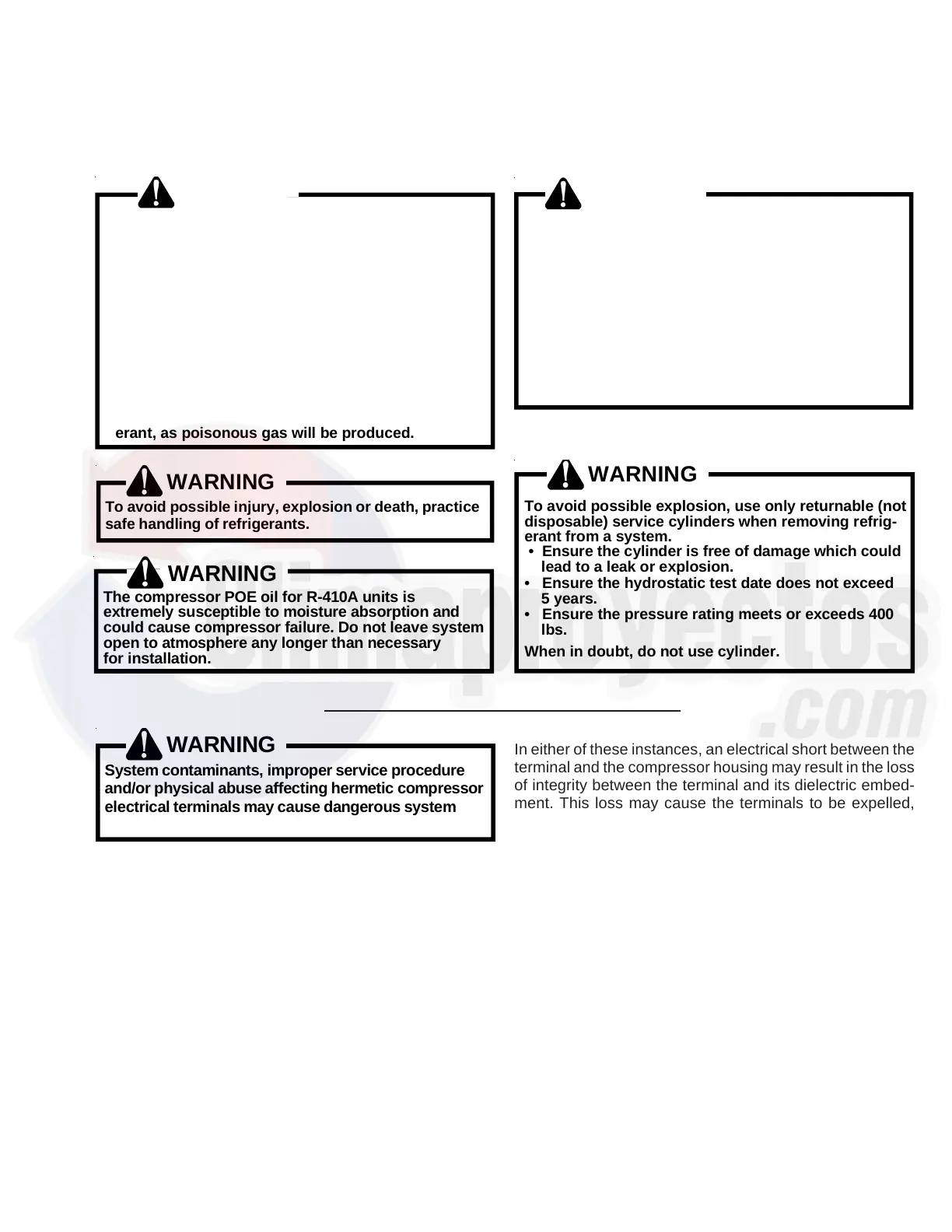 could cause compressor failure. Do not leave system