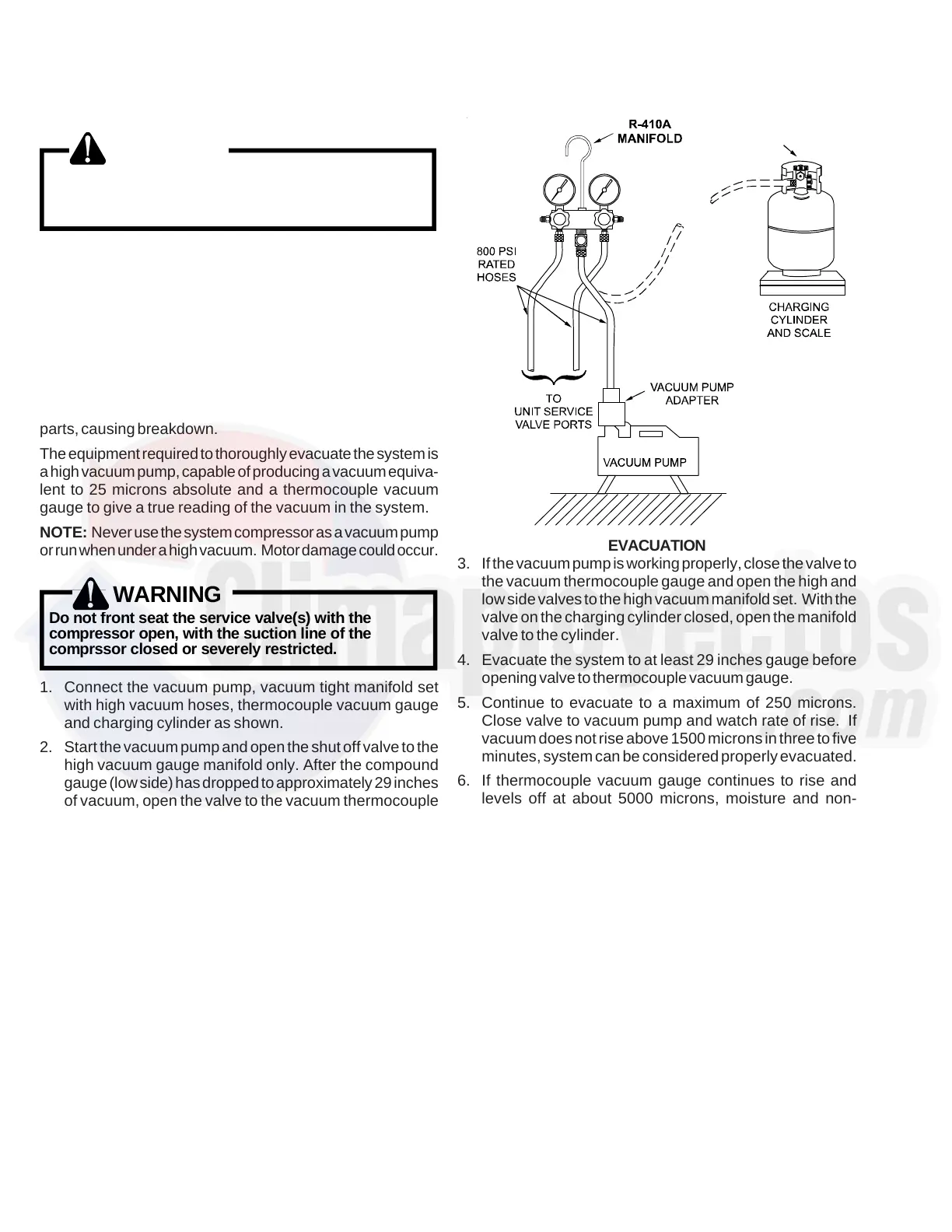 4. Evacuate the system to at least 29 inches gauge before