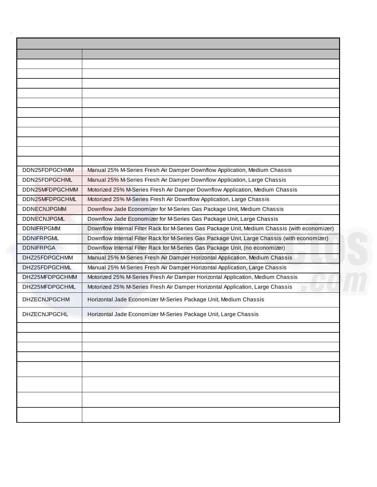 DDN25FDPGCHML Manual 25% M-Series Fresh Air Damper Downflow Application, Large Chassis