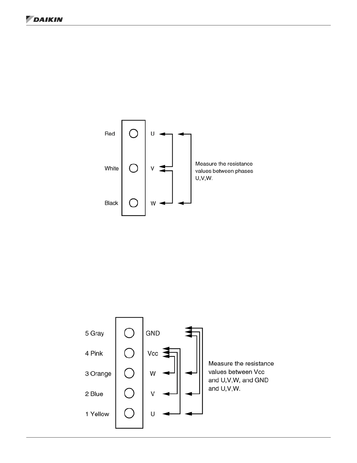 2. Measure the resistance between Vcc and each phase
