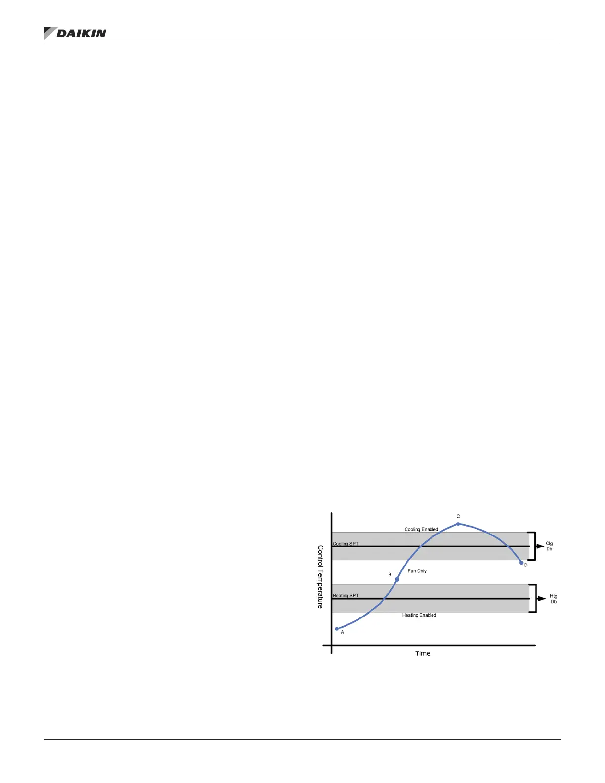by more than ½ the deadband (point C) cooling operation is