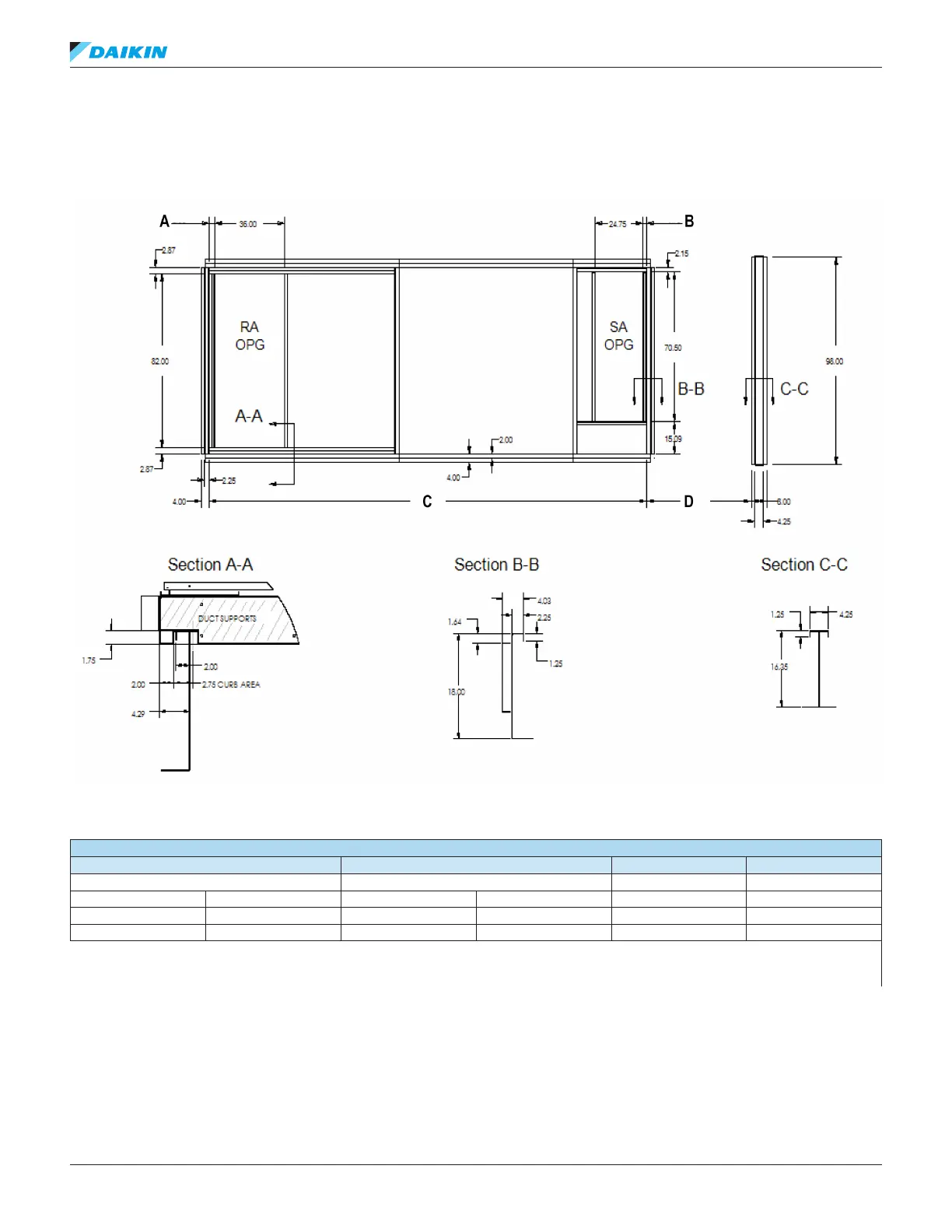 1. The unit length is congured based on the application and selection. For exact job specic curb drawings, talk with your Daikin Sales Representative.