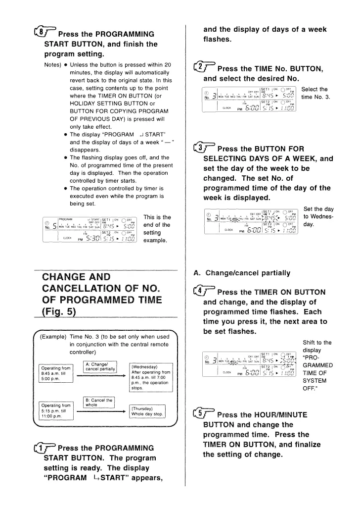 Daikin DST301B61 - Change and Cancellation of No. of Programmed Time; Change;Cancel Partially