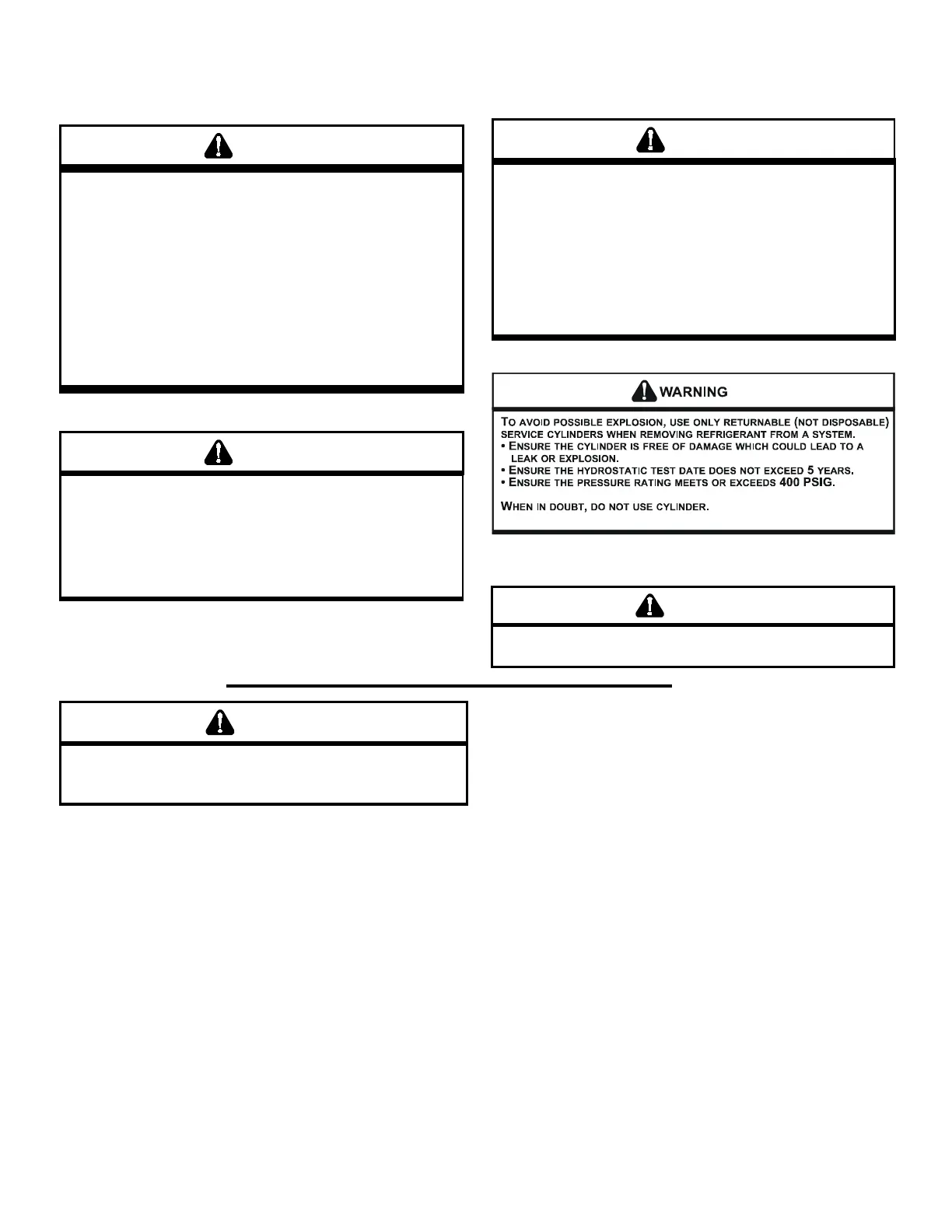 EVER APPLY FLAME OR STEAM TO A REFRIGERANT CYLINDER.