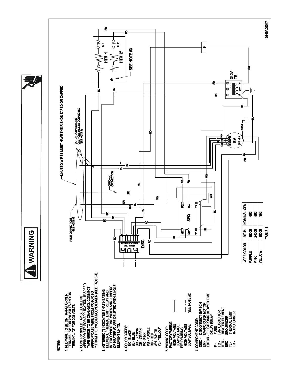 Wiring is subject to change. Always refer to the wiring diagram on the unit for the most up-to-date wiring.