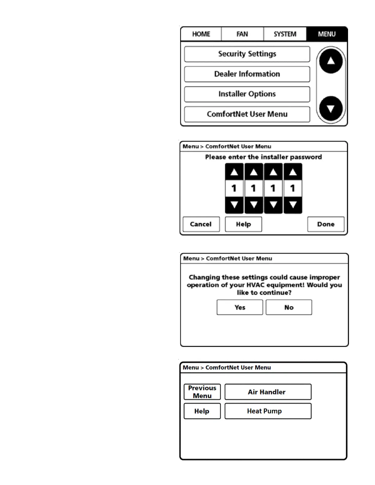 7. From the ComfortNet USER MENU, select HEAT PUMP.