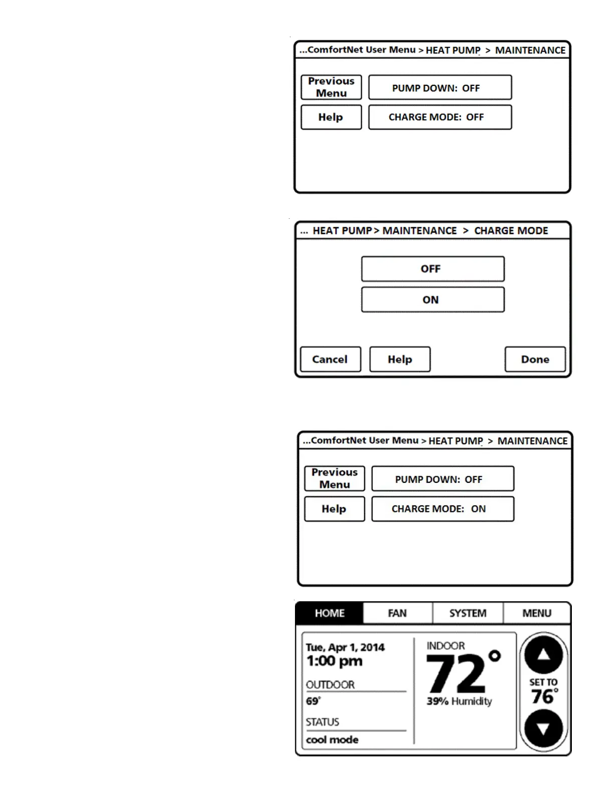 at COOL or HEAT MODE from the SYSTEM menu on the main