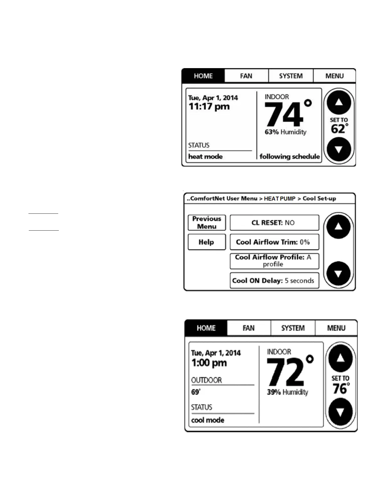 3. Once Cool Set-up / Heat Set-up settings are complete,