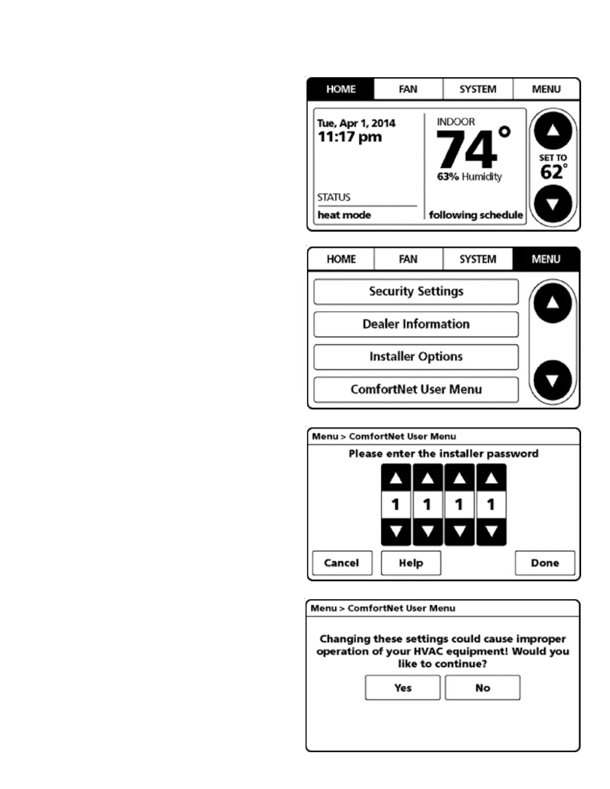 2. From the MENU screen, select COMFORTNET™ USER MENU.