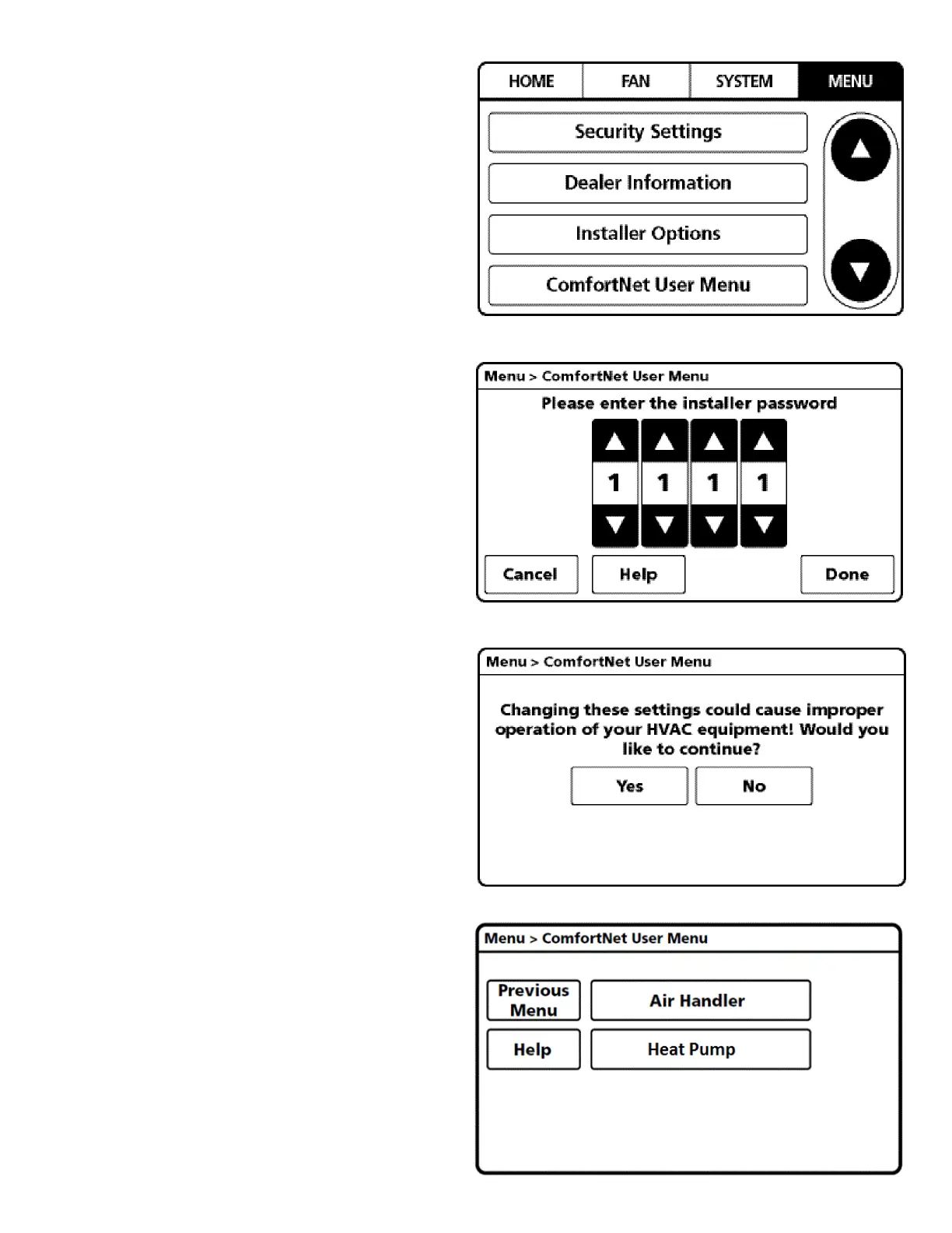 COMFORTNET™ USER MENU.