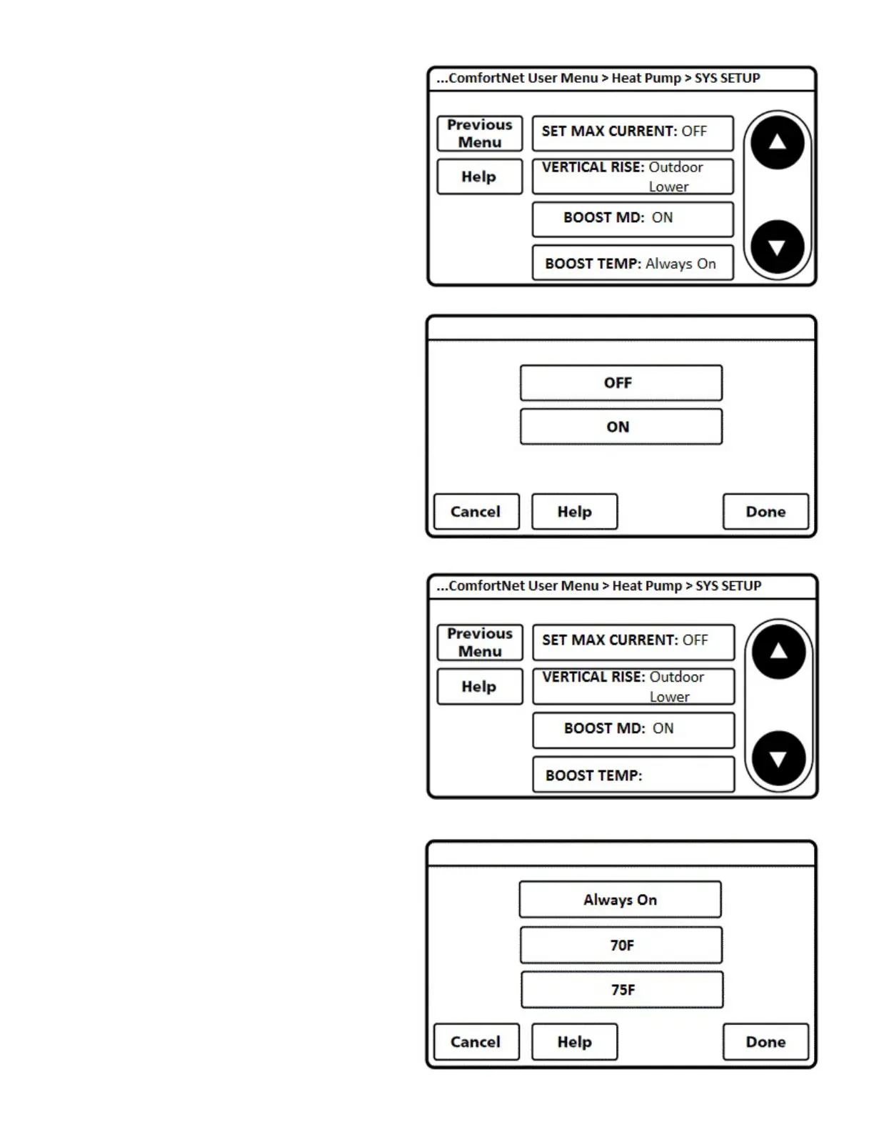 ...Heat Pump > SYS SETUP > BOOST TEMP