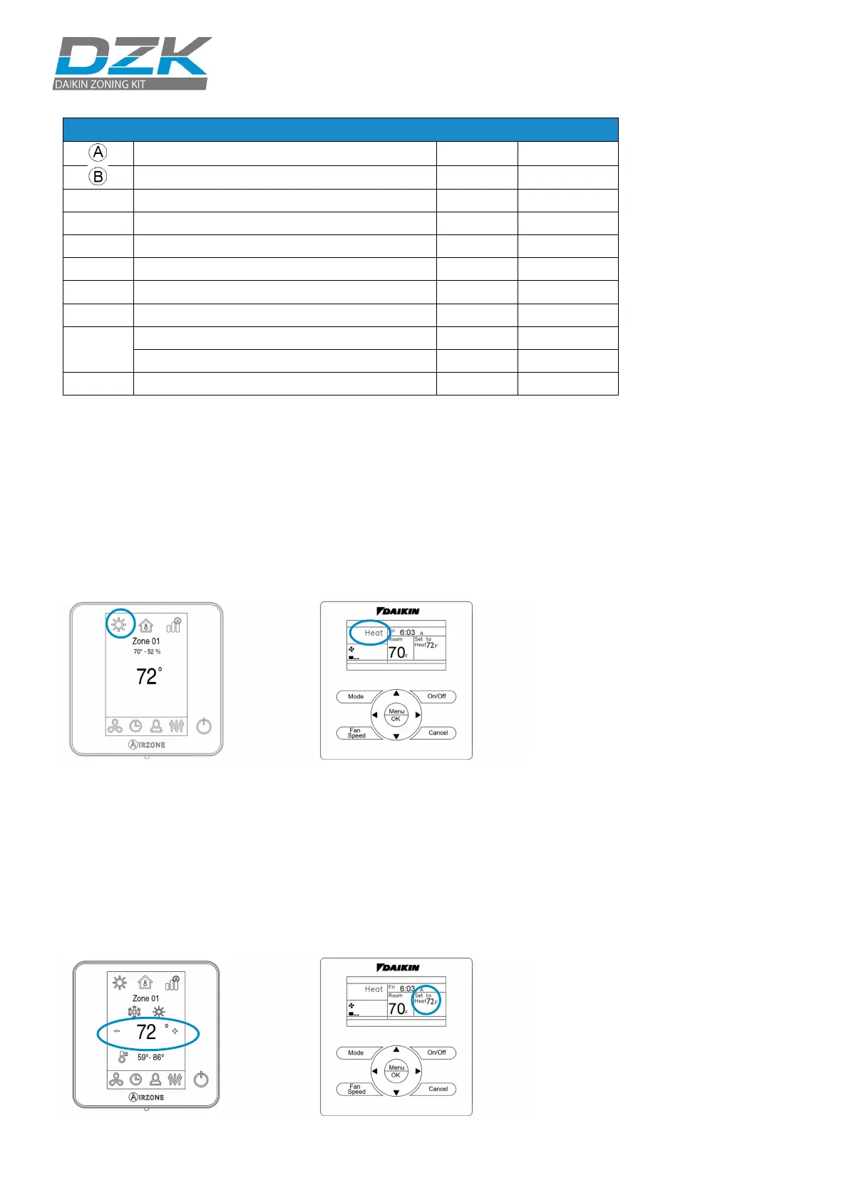 Wired Thermostat set point, and verify that the set point in the