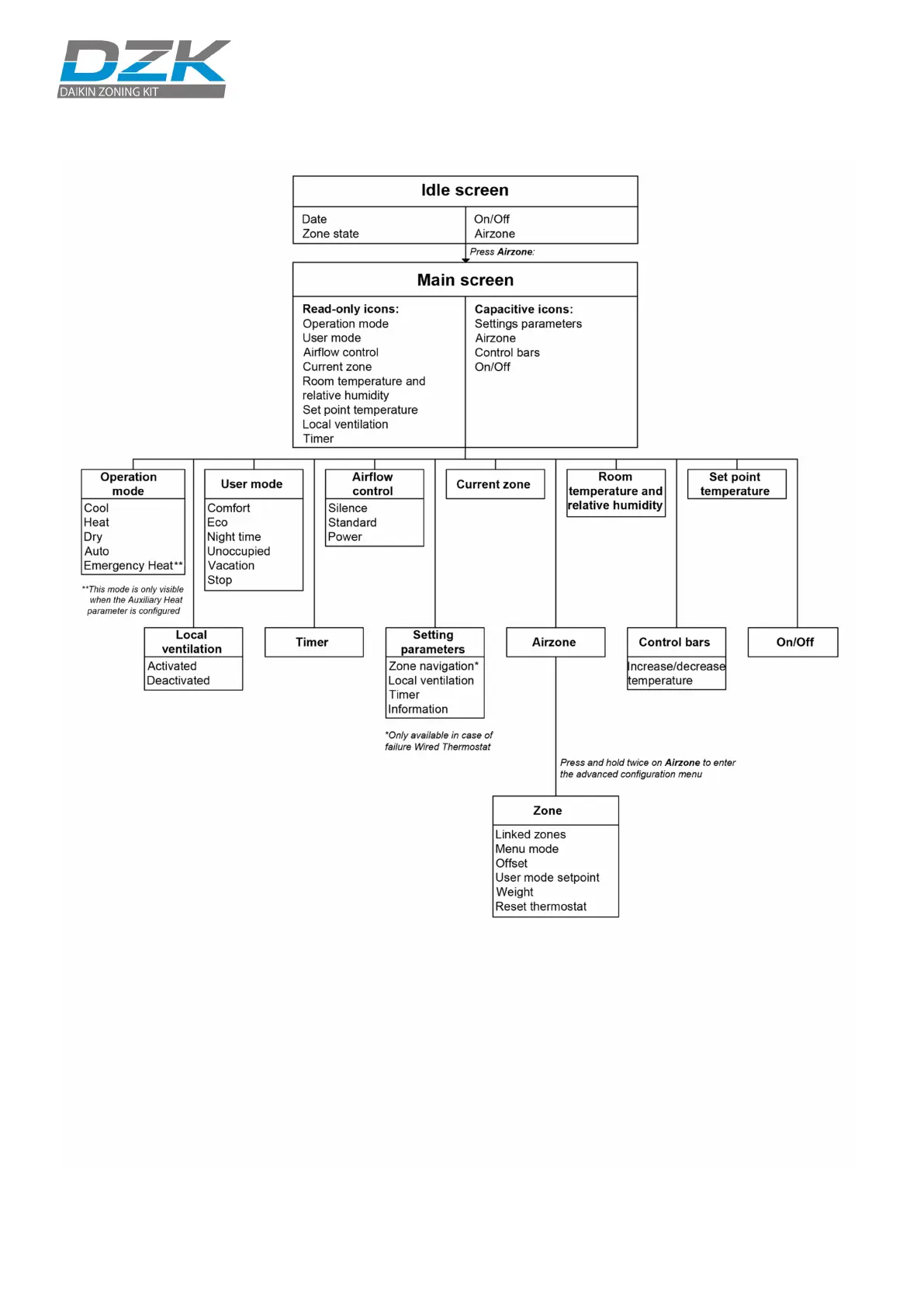 Daikin DZK030E4-3 - Wireless Thermostat Navigation Guide