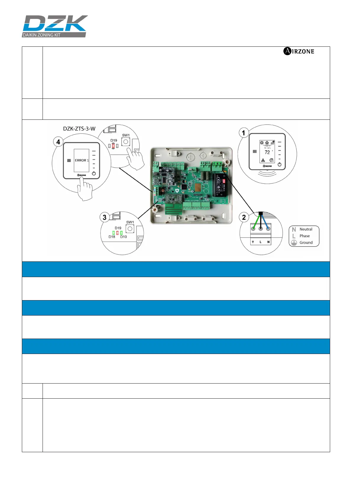 SW1 at the DZK Control Board or from any Wired Thermostat, activating the Radio channel