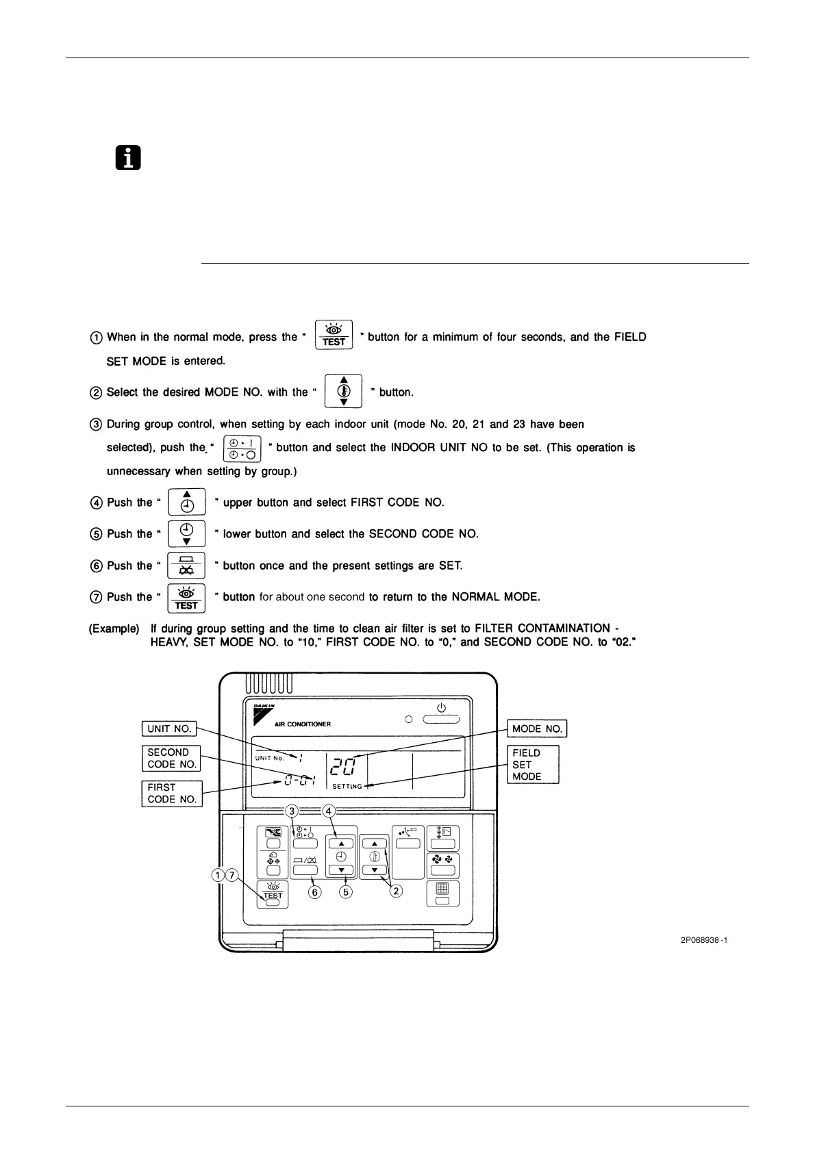 Note: (Field setting must be made from the remote controller in accordance with the installation