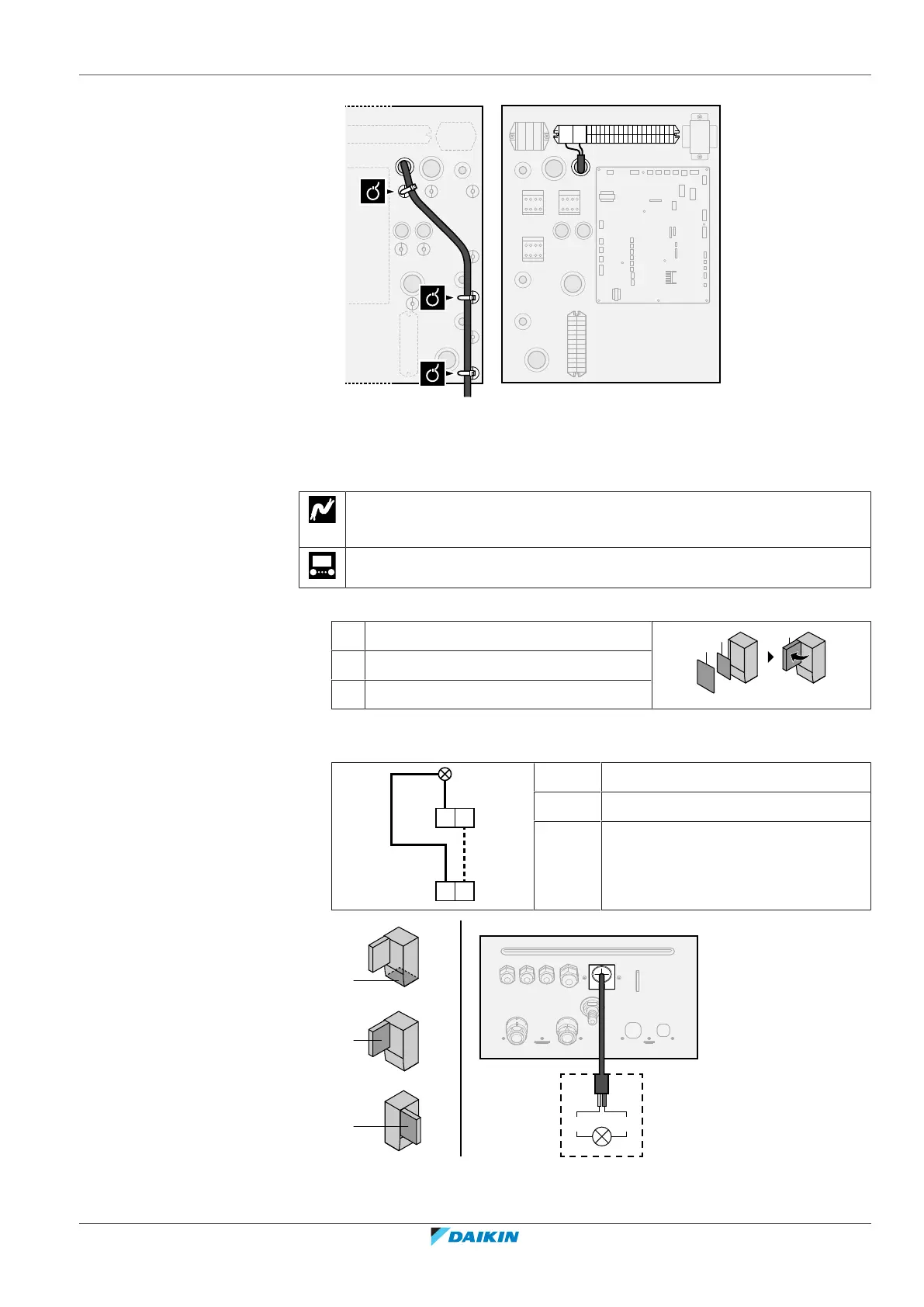 2 Connect the alarm output cable to the appropriate terminals as shown in the