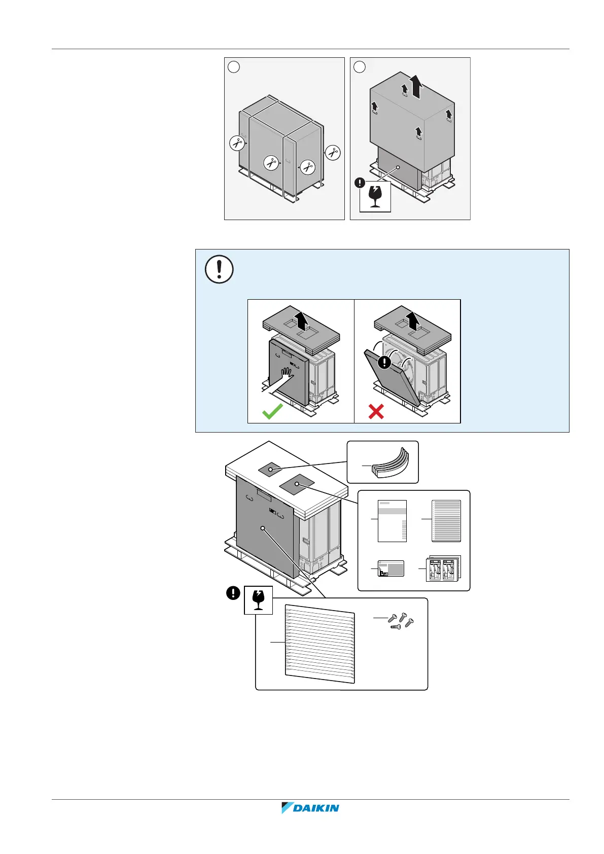 Unpacking – Top packaging. When you remove the top packaging, hold the box