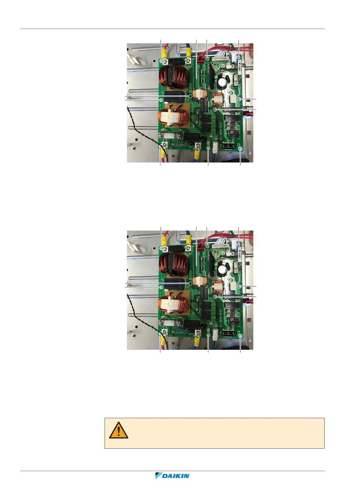 1 Install the noise filter PCB on its correct location.