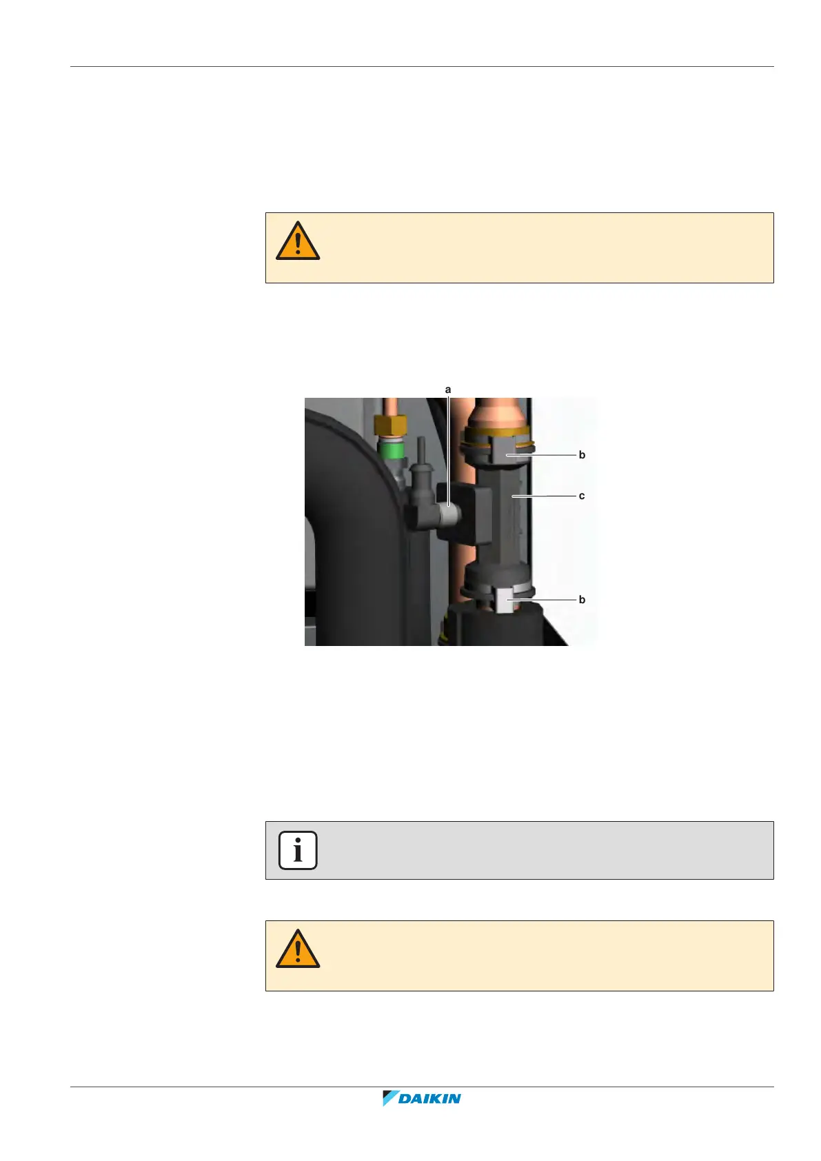 9 Open the stop valves and add water to the water circuit if needed, see