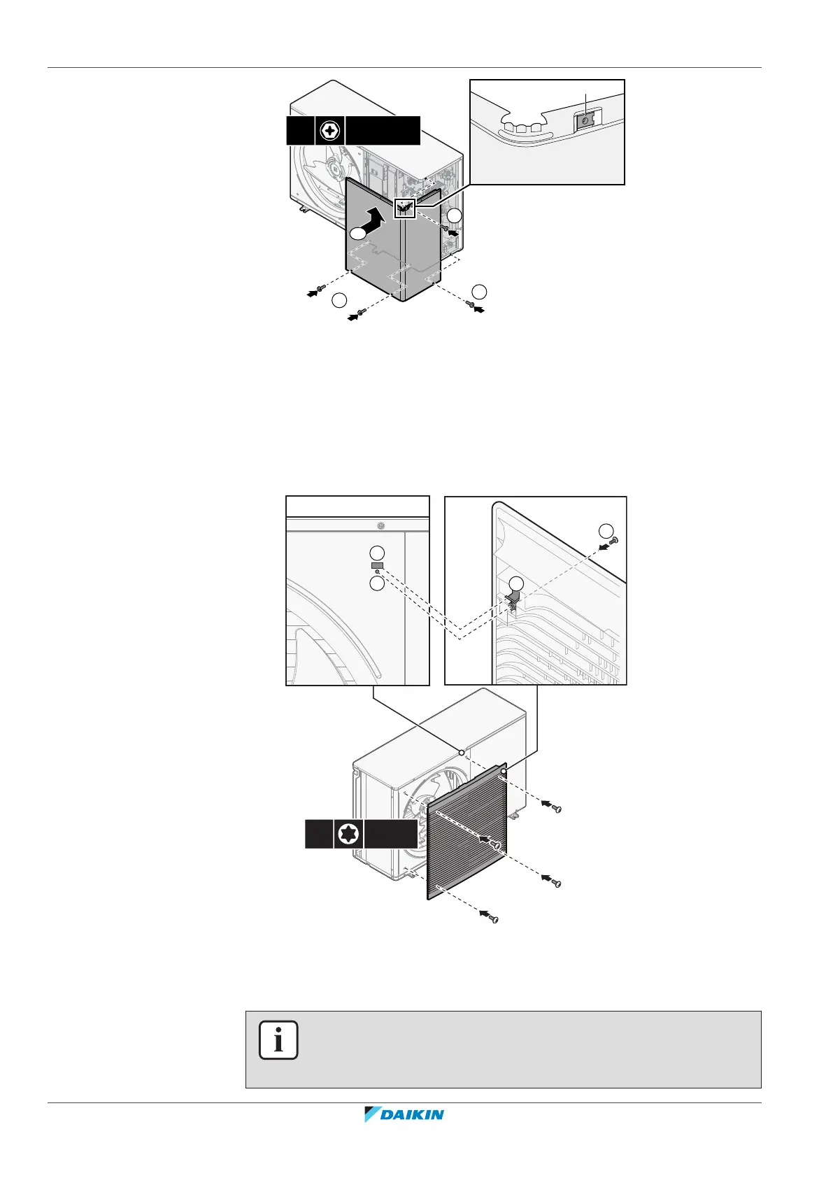 2 Insert and fix the screws (4×)(delivered as accessory).