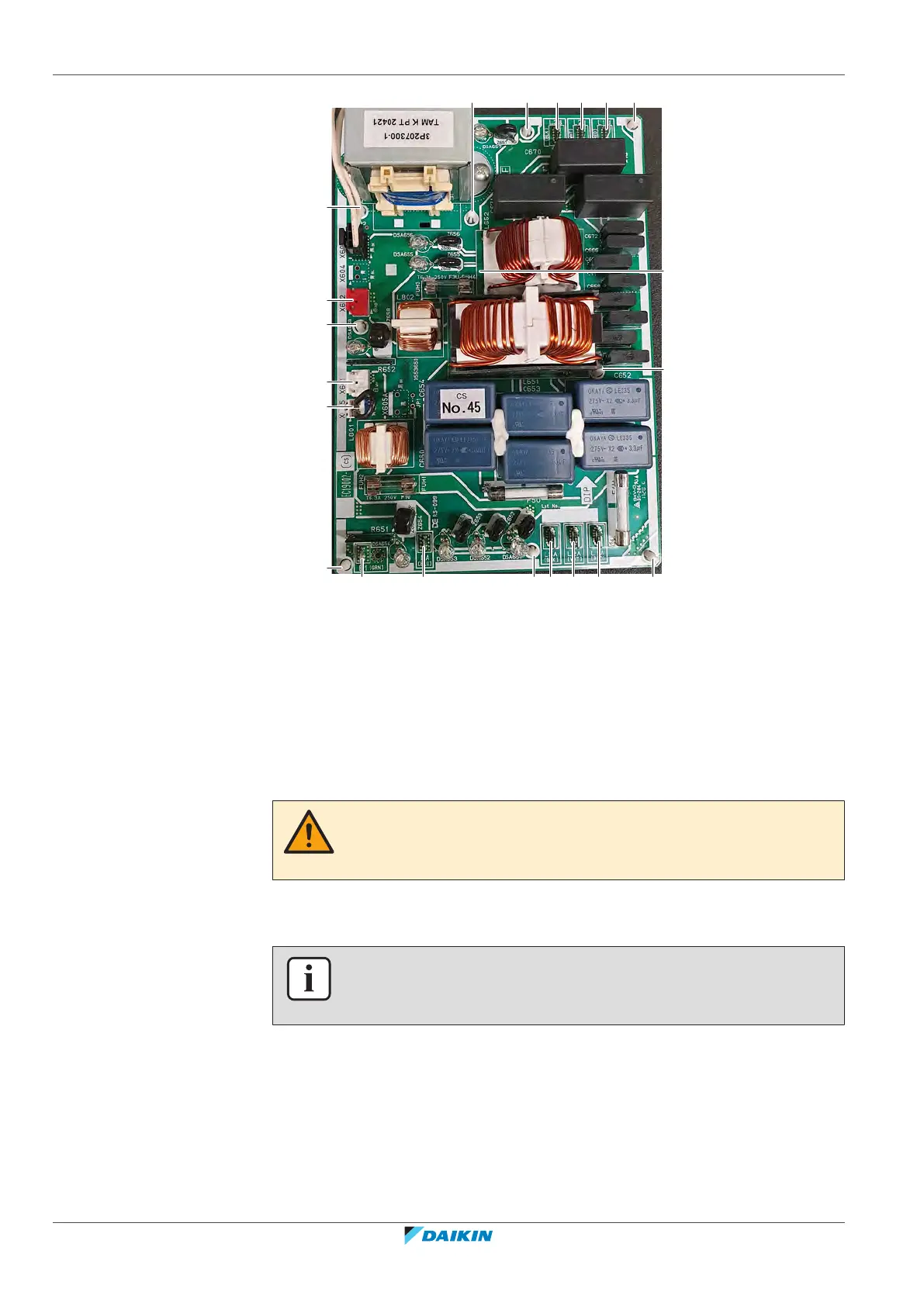 2 Install the bridge connector X605 on the noise filter PCB.