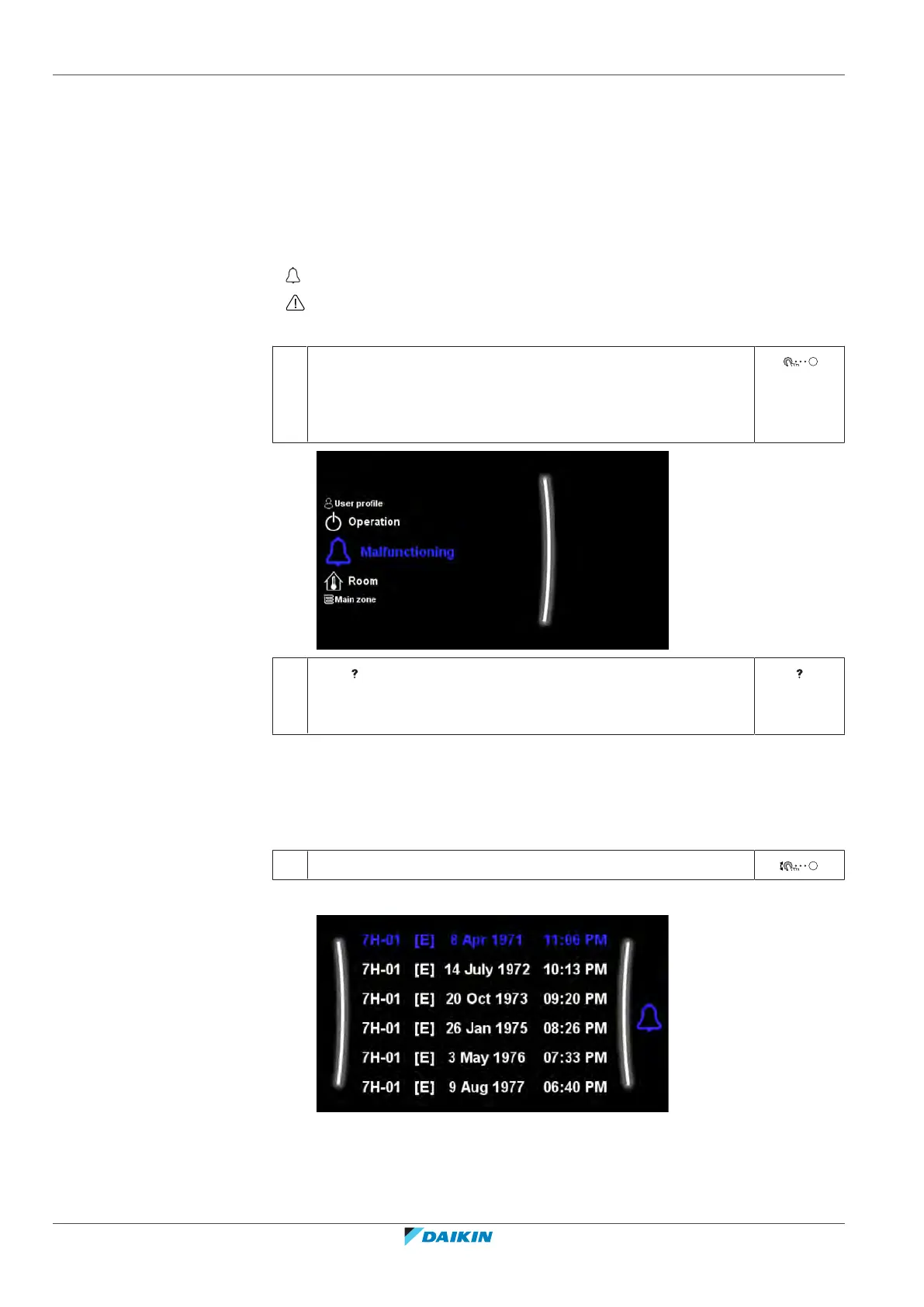 In case of a malfunction, the following will appear on the home screen depending