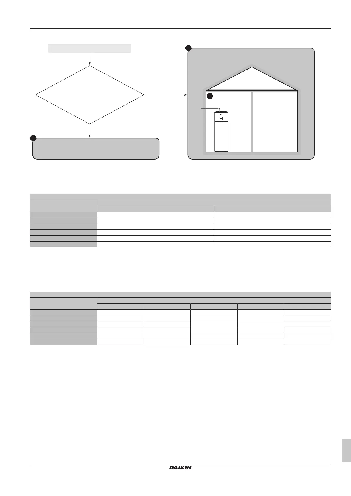 • For intermediate refrigerant charges, use the row with the higher value. Example: If the refrigerant charge is 4.3kg, use the row of 4.5kg.