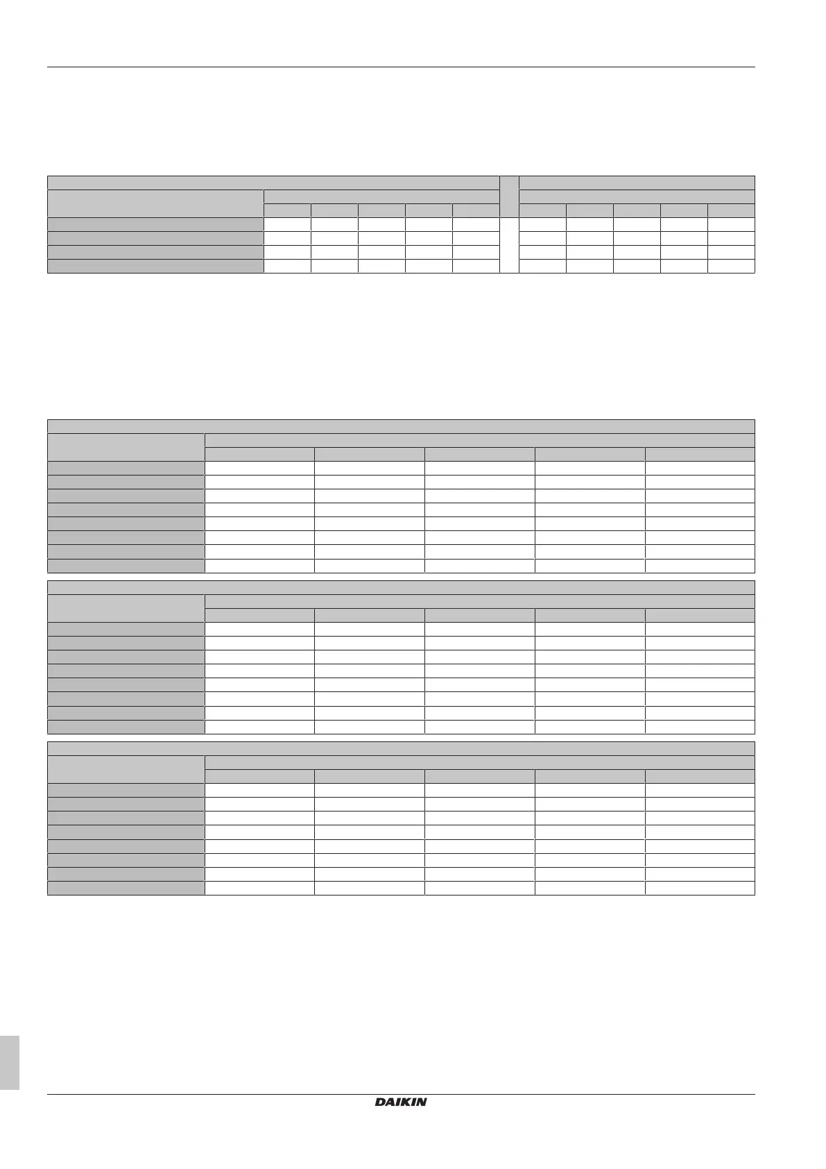 • Use the correct table. For intermediate refrigerant charges, use the table with the higher value. Example: If the refrigerant charge is 4.3kg,