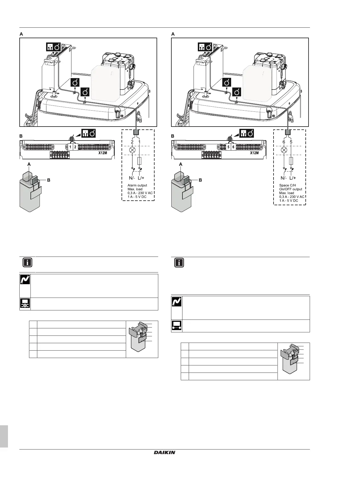 2 Connect the space cooling/heating ON/OFF output cable to the