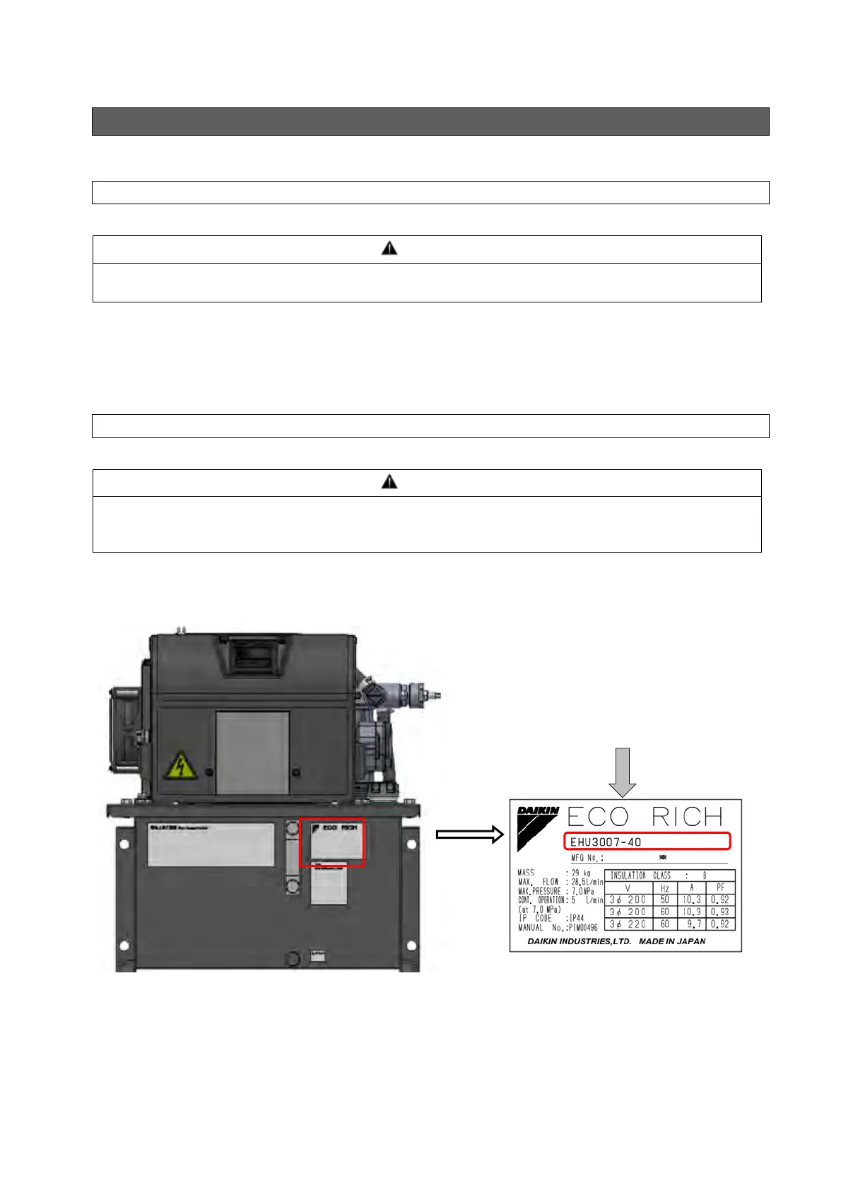 Check, with the product nameplates, that the actual item matches the ordered product. For details on
