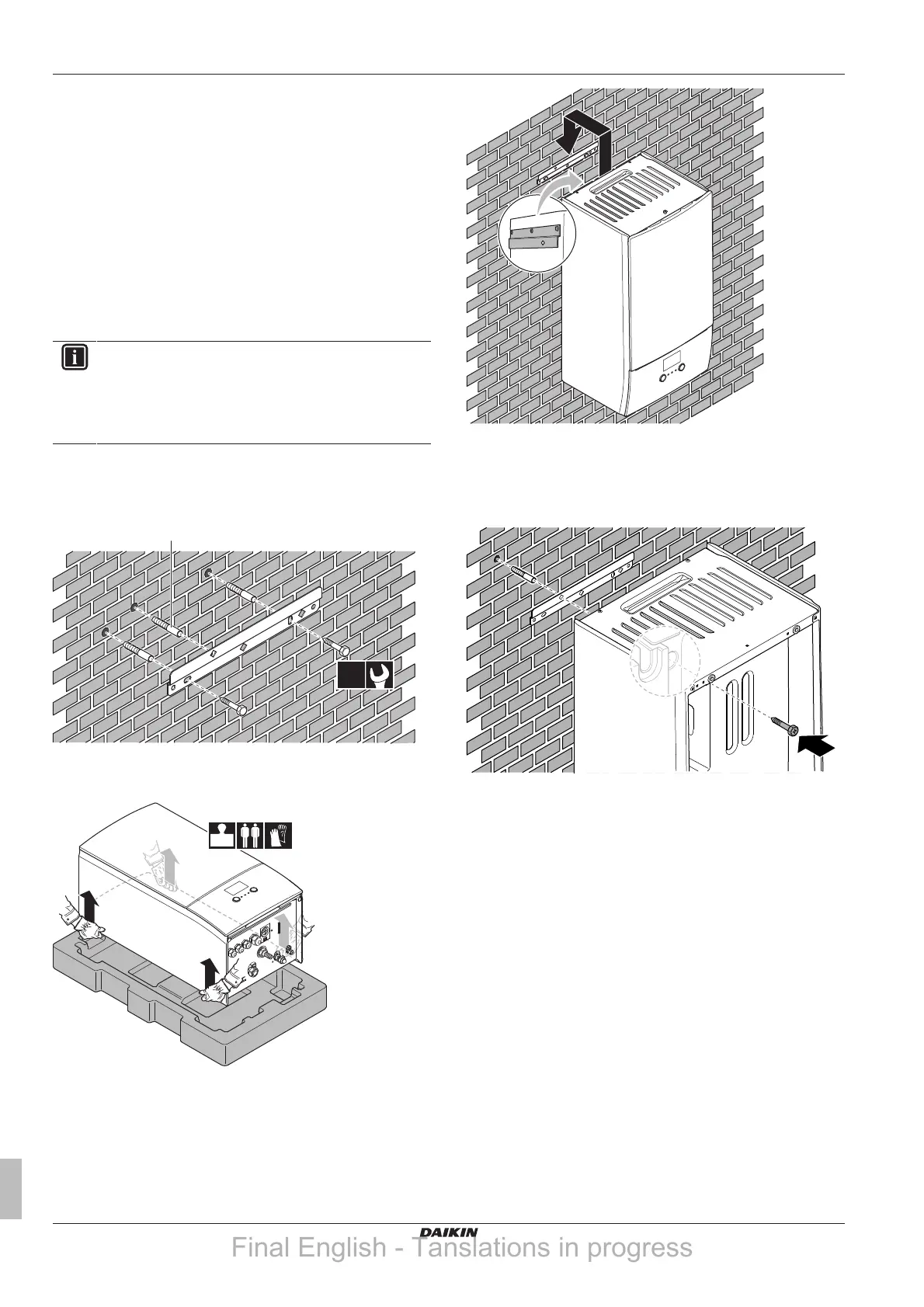 1 Fix the wall bracket (accessory) to the wall (level) with 2 Ø8mm