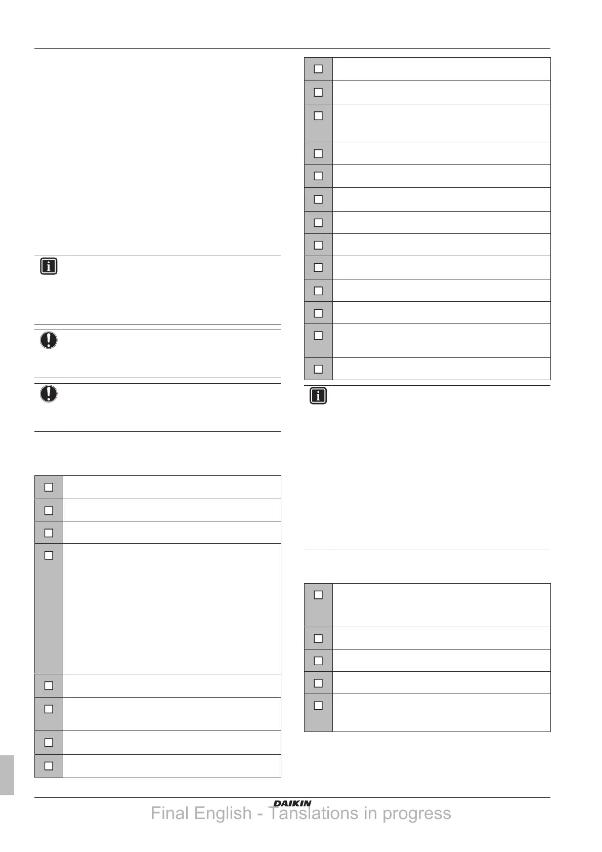 9.4 Checklist during commissioning