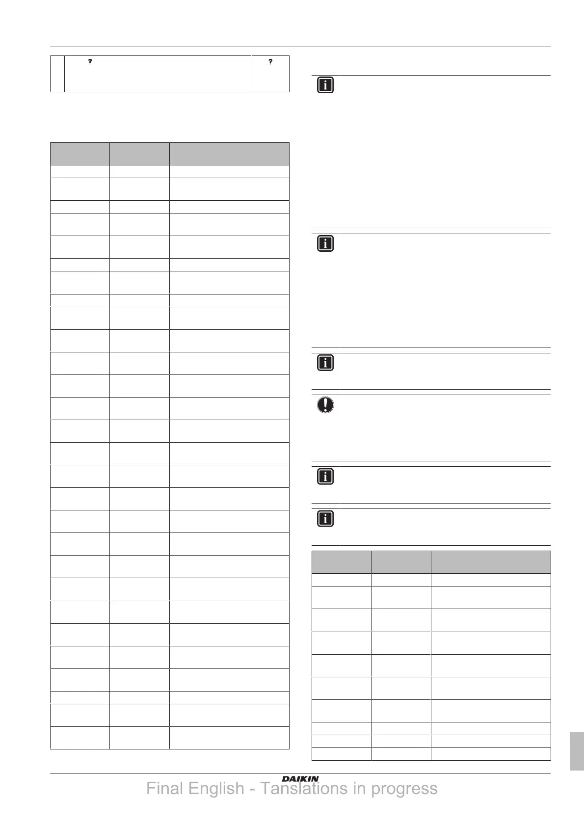 the table below, the unit will temporarily stop operation and