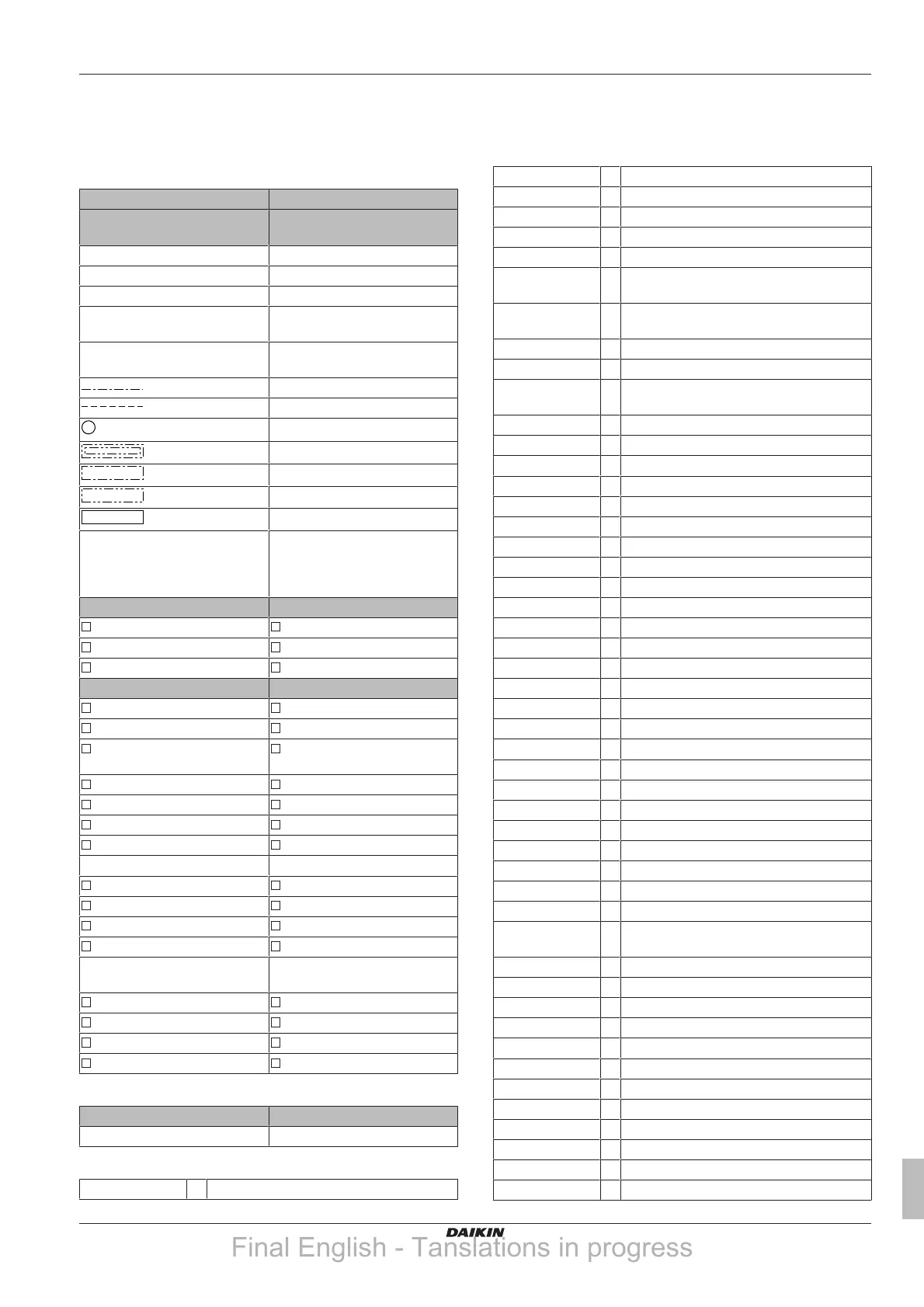 See the internal wiring diagram supplied with the unit (on the inside of the indoor unit upper front panel). The abbreviations used are listed