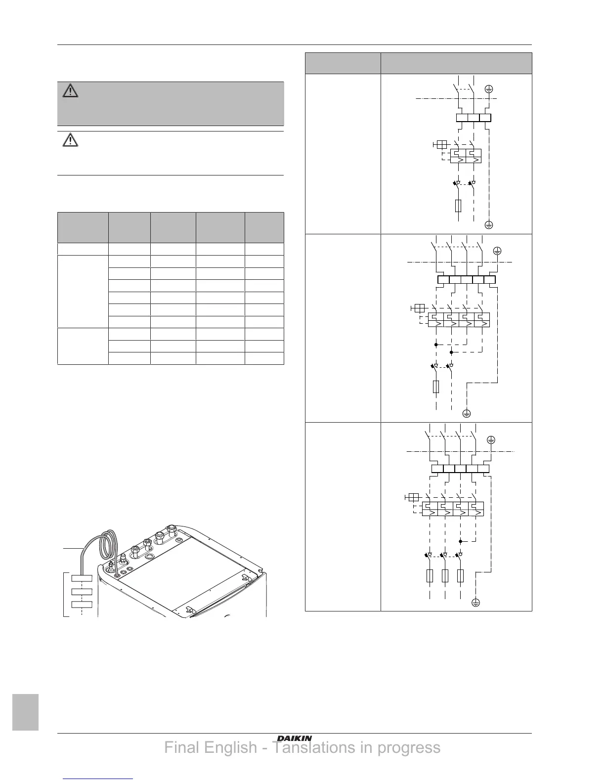 b Field wiring (see table below)