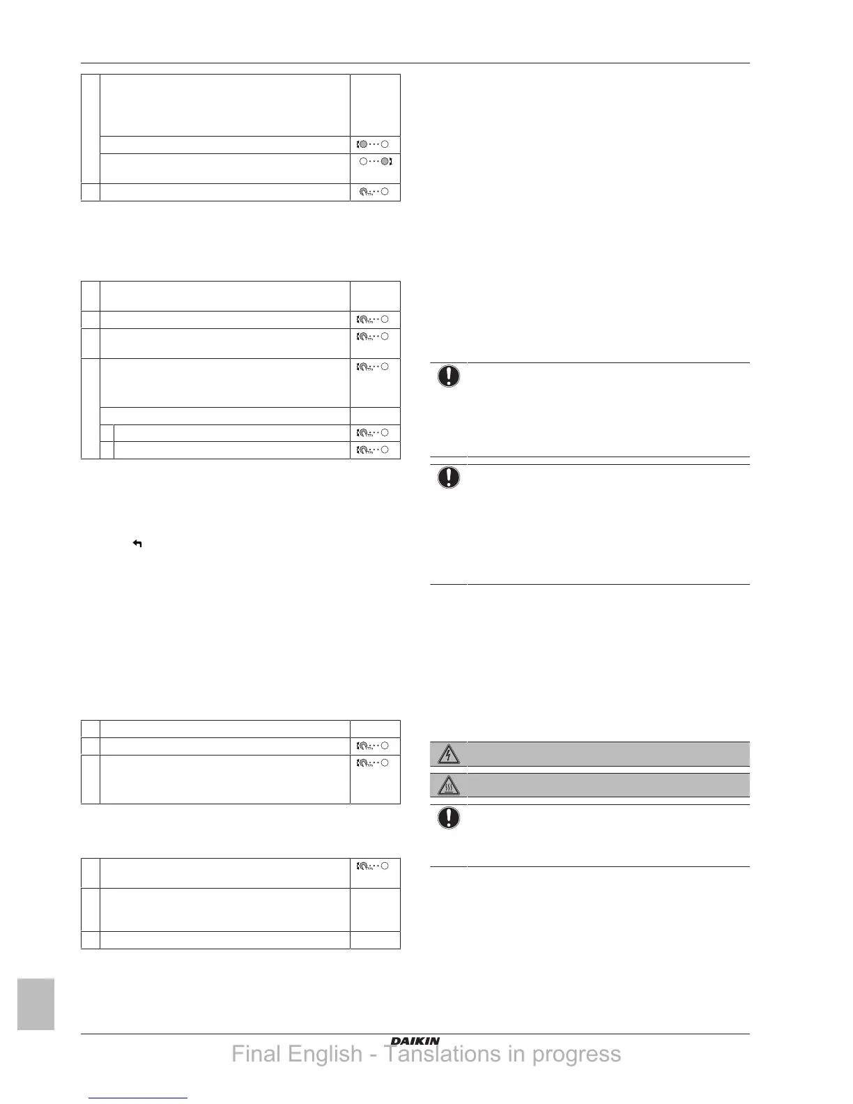 Operation menu and turn off Room, Space heating/cooling and Tank
