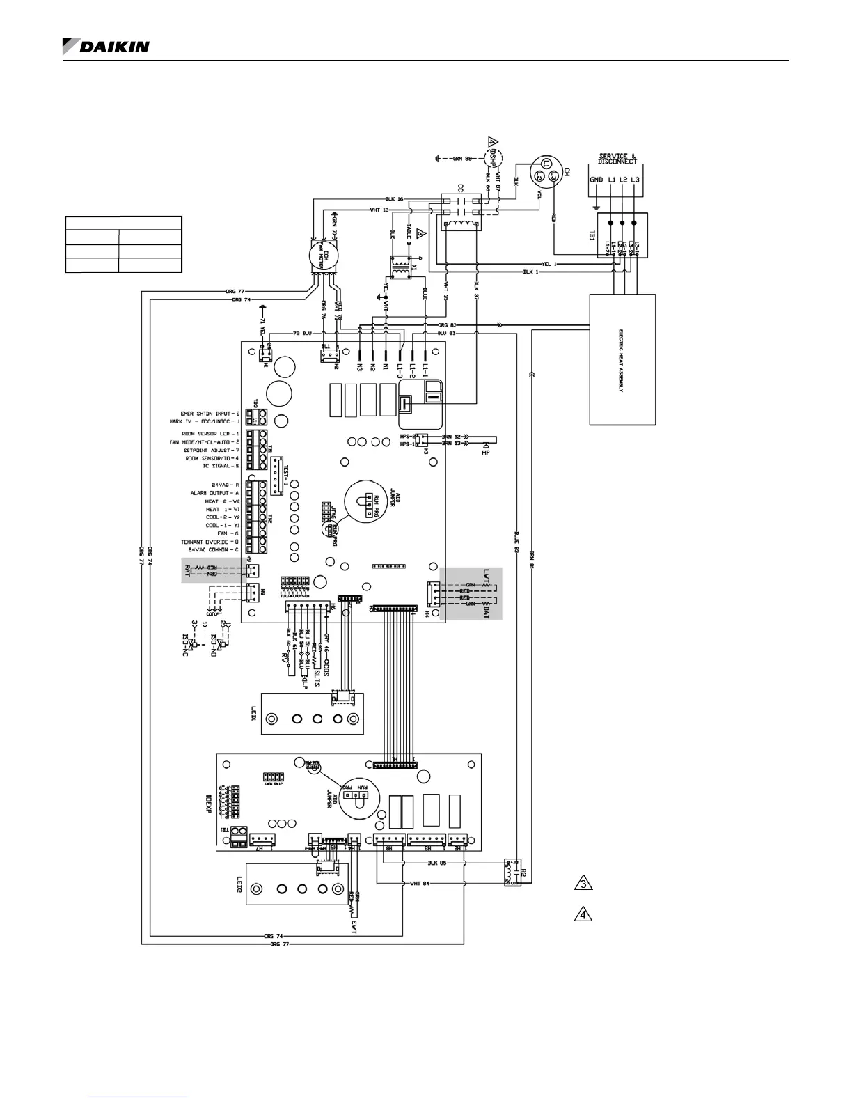 Note: Gray tinted areas in the wiring diagram: Units with factory installed communication module include Discharge Air Temperature (DAT) and Return
