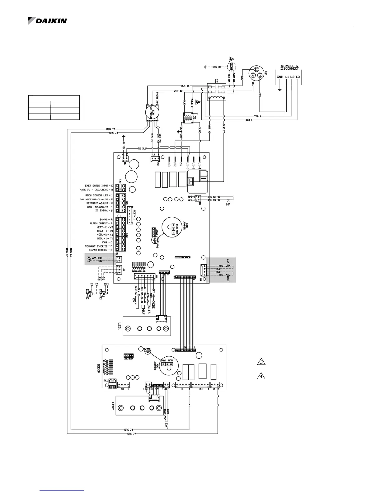 Note: Gray tinted areas in the wiring diagram: Units with factory installed communication module include Discharge Air Temperature (DAT) and Return
