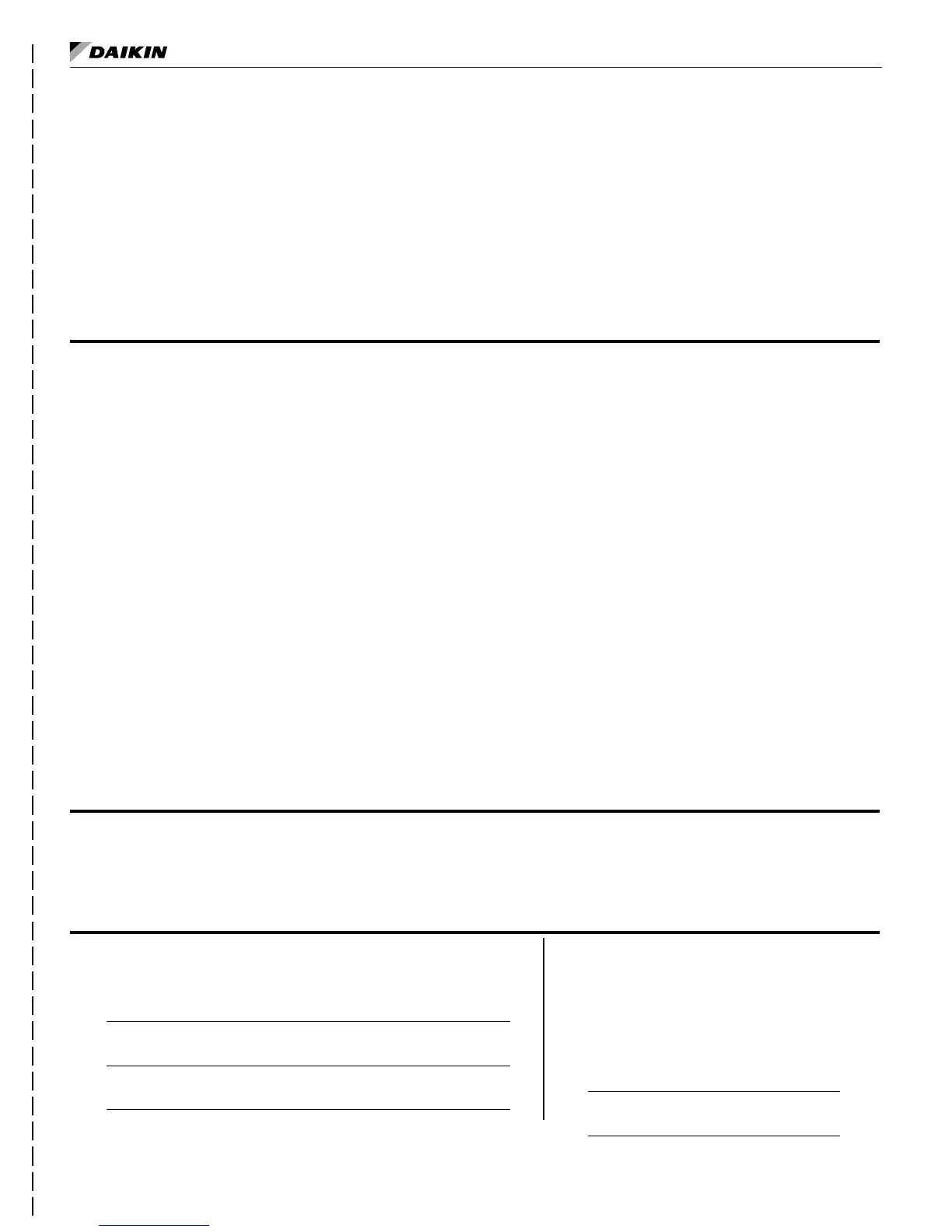 Thisformmustbecompletedandsubmittedwithinten(10)daysofstart-uptocomplywiththetermsoftheDaikinwarranty.Formsshould