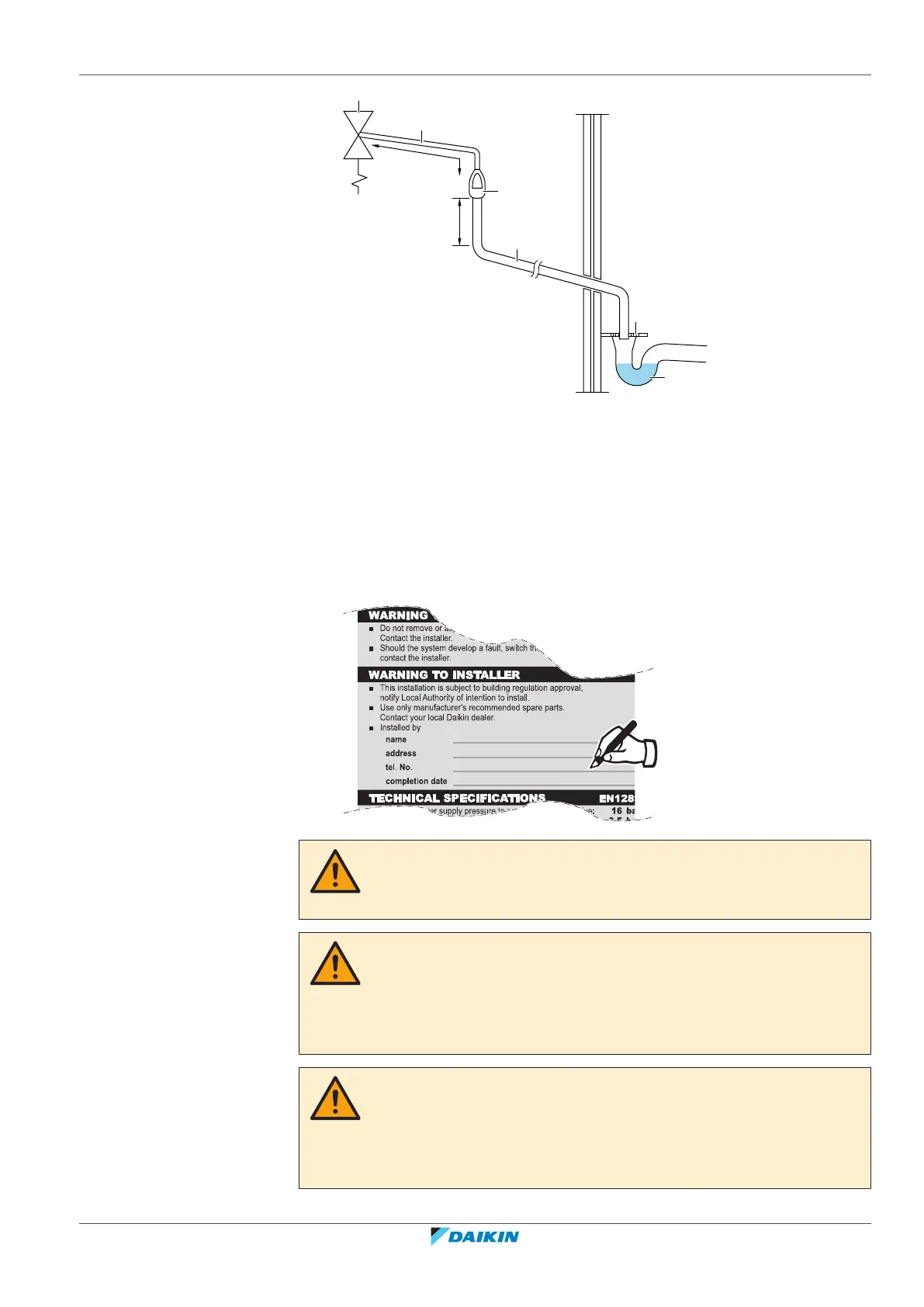 ▪ Discharge piping, tundish, drain valves, etc. MUST be positioned away from any