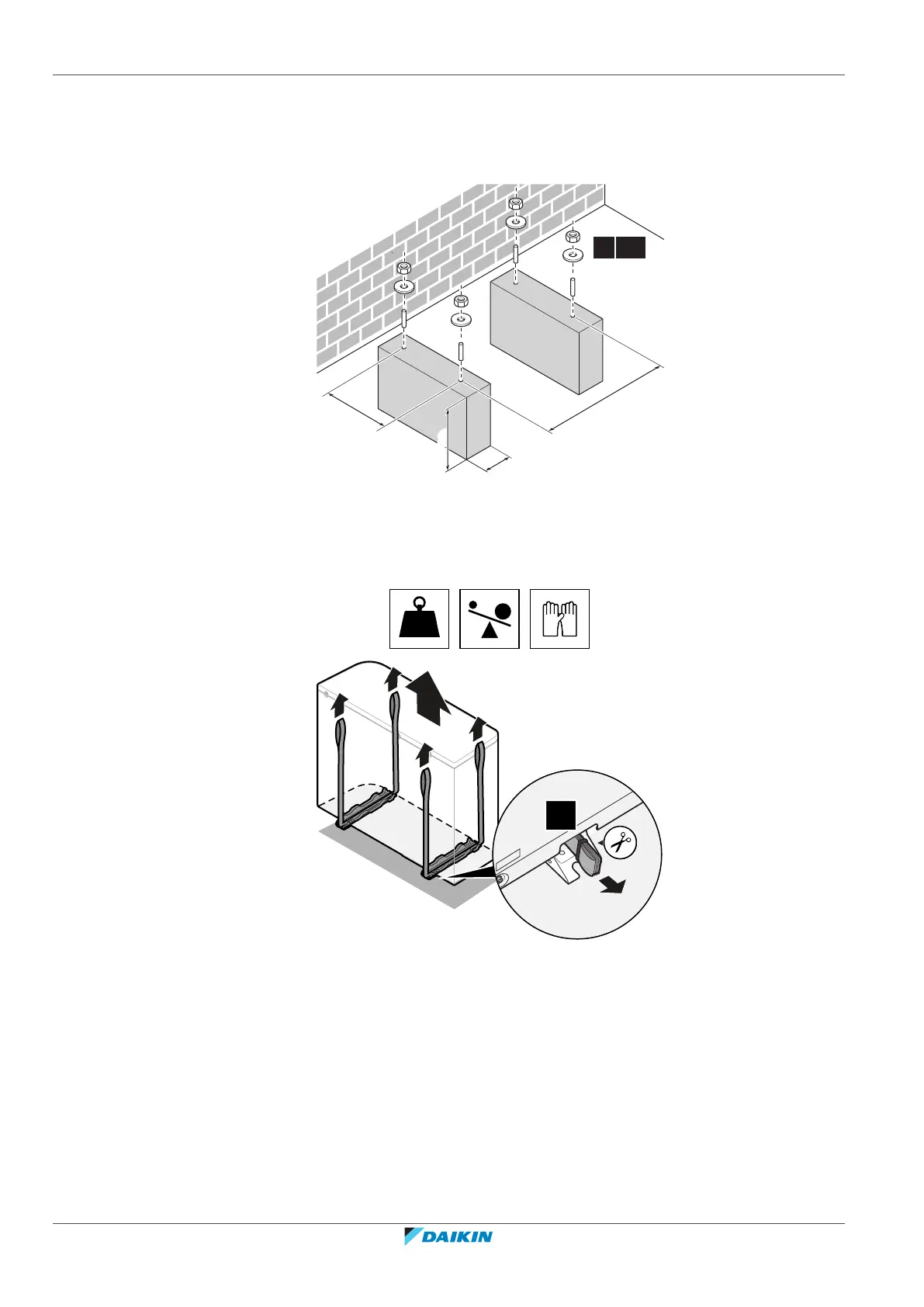 1 Carry the unit by its slings, and put it onto the installation structure.