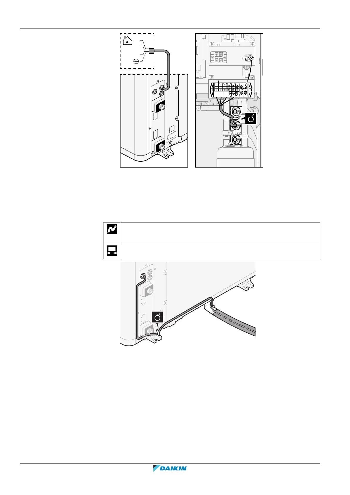 ▪ Connect the wires to the terminal block and the earth screw.