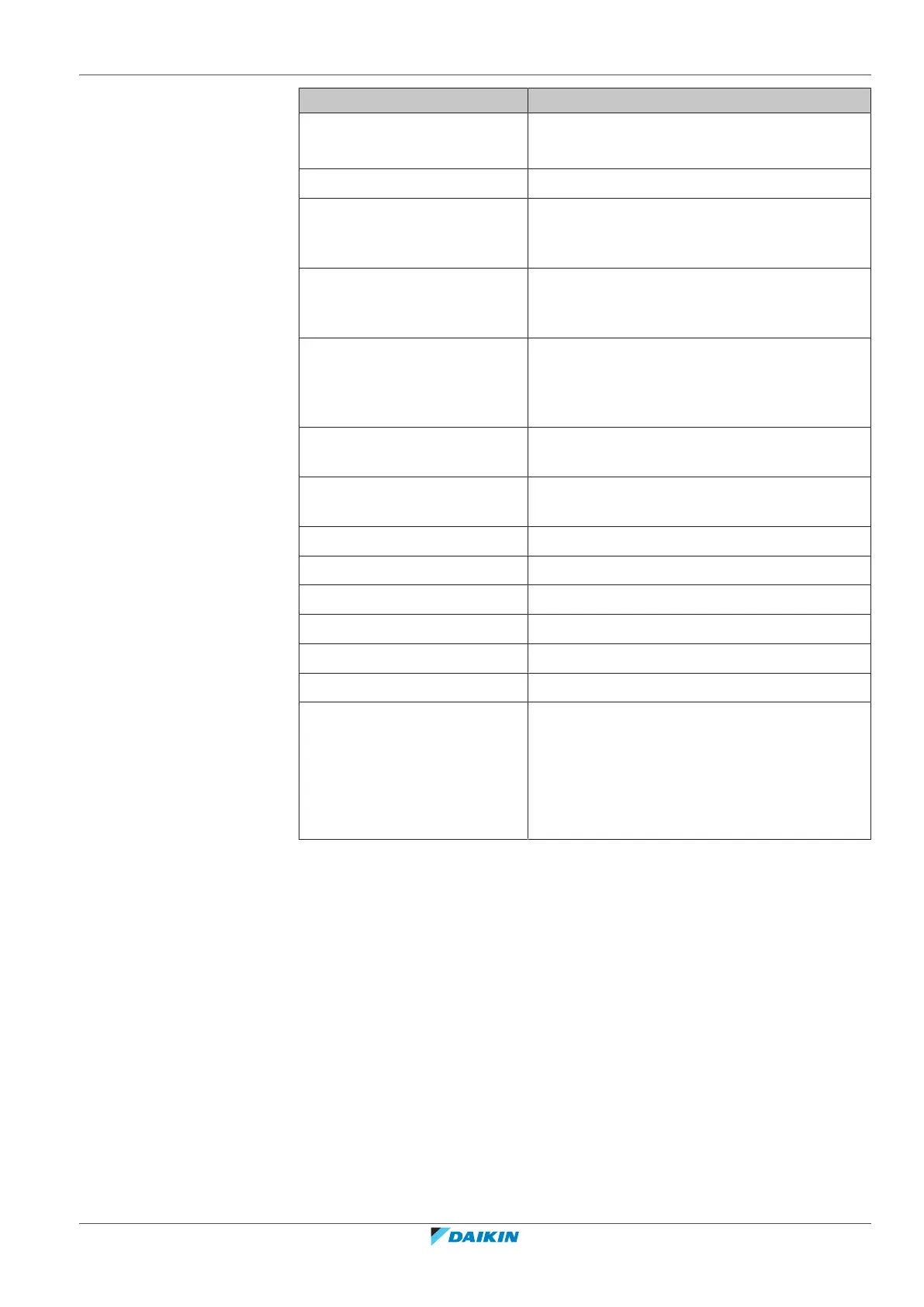 Field settings table Table to be filled in by the installer, and kept for