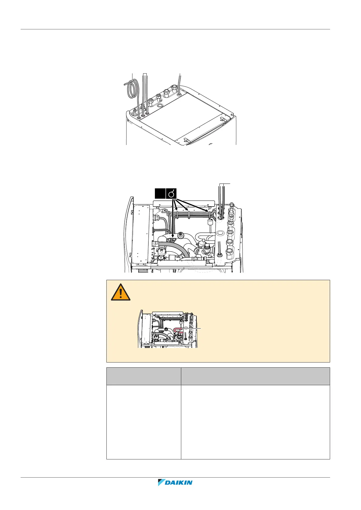 Make sure that the electrical wiring does NOT touch the refrigerant gas pipe, which
