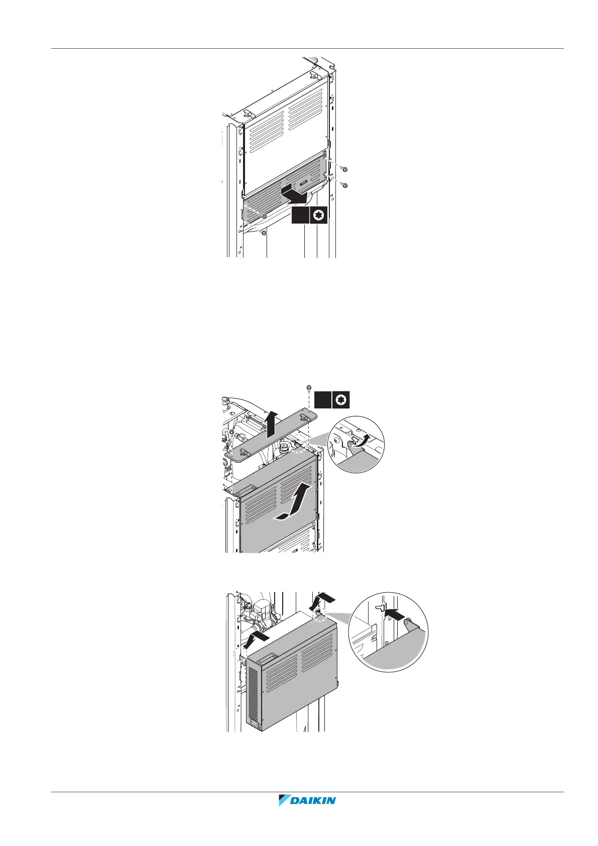 1 Remove the fixing plate at the top of the unit.