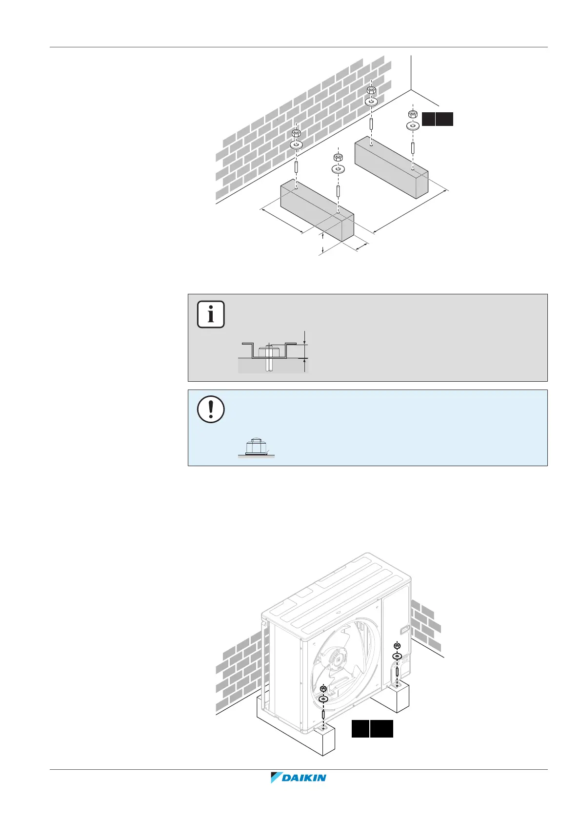 Fix the outdoor unit to the foundation bolts using nuts with resin washers (a). If the