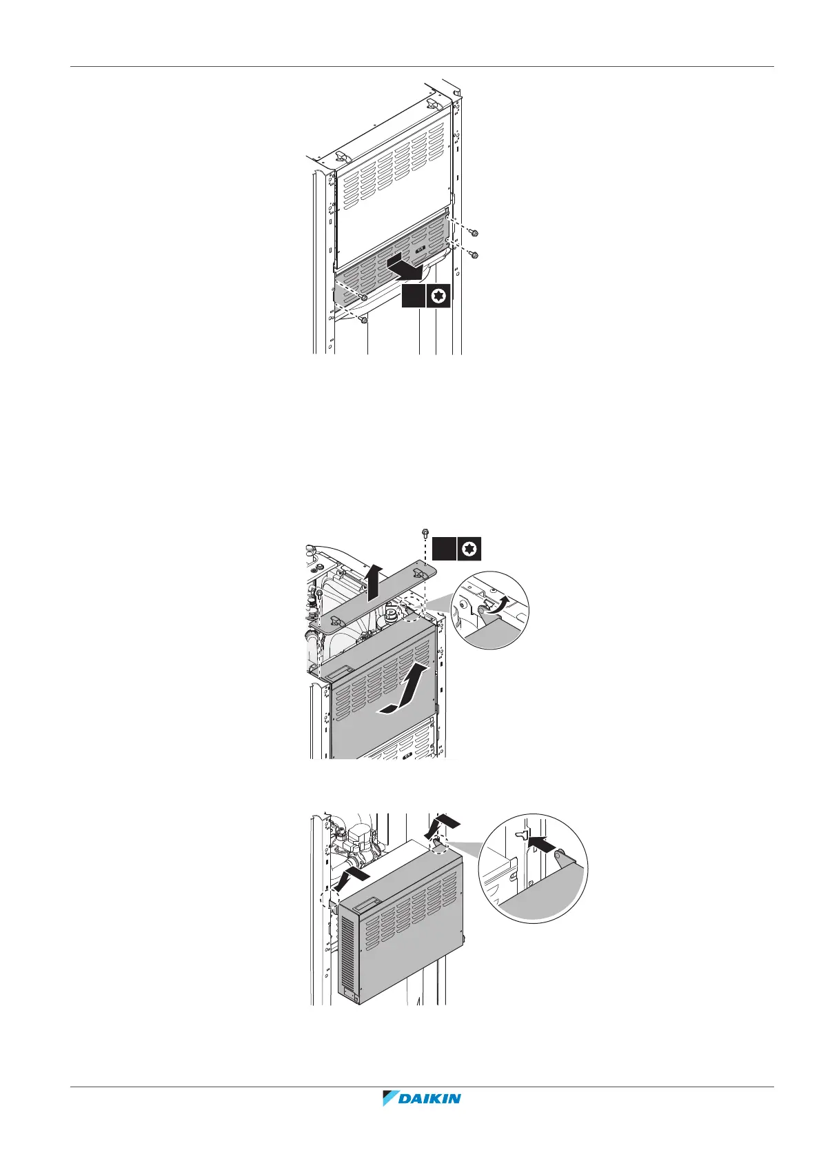 3 Place the switch box lower on the unit. Use the 2 hinges located lower on the