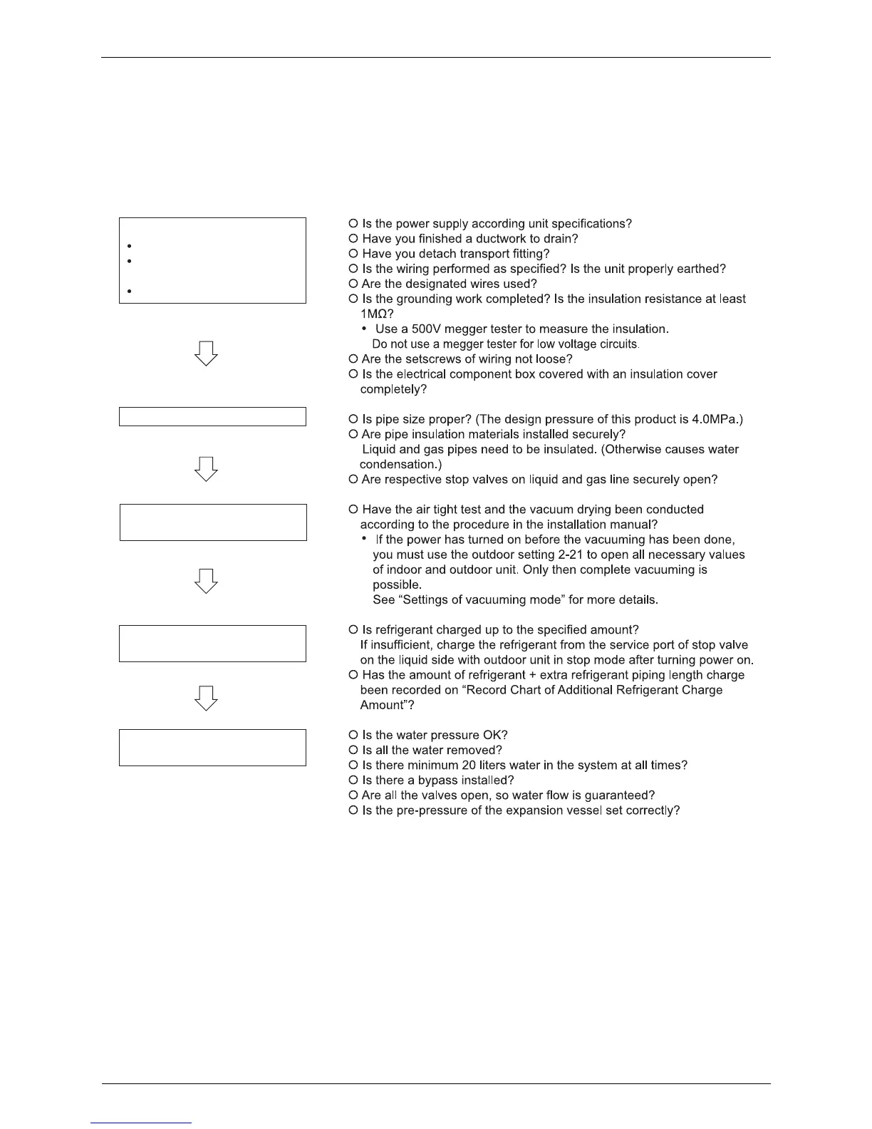 Follow the following procedure to conduct the initial test operation after installation.