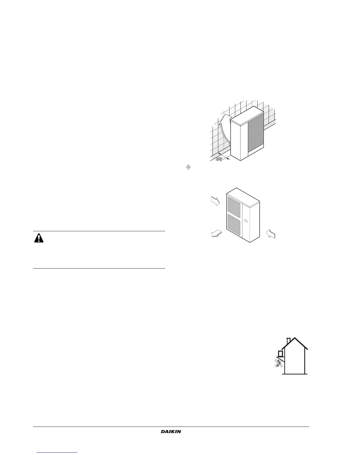- Places where water leaking from the unit cannot cause