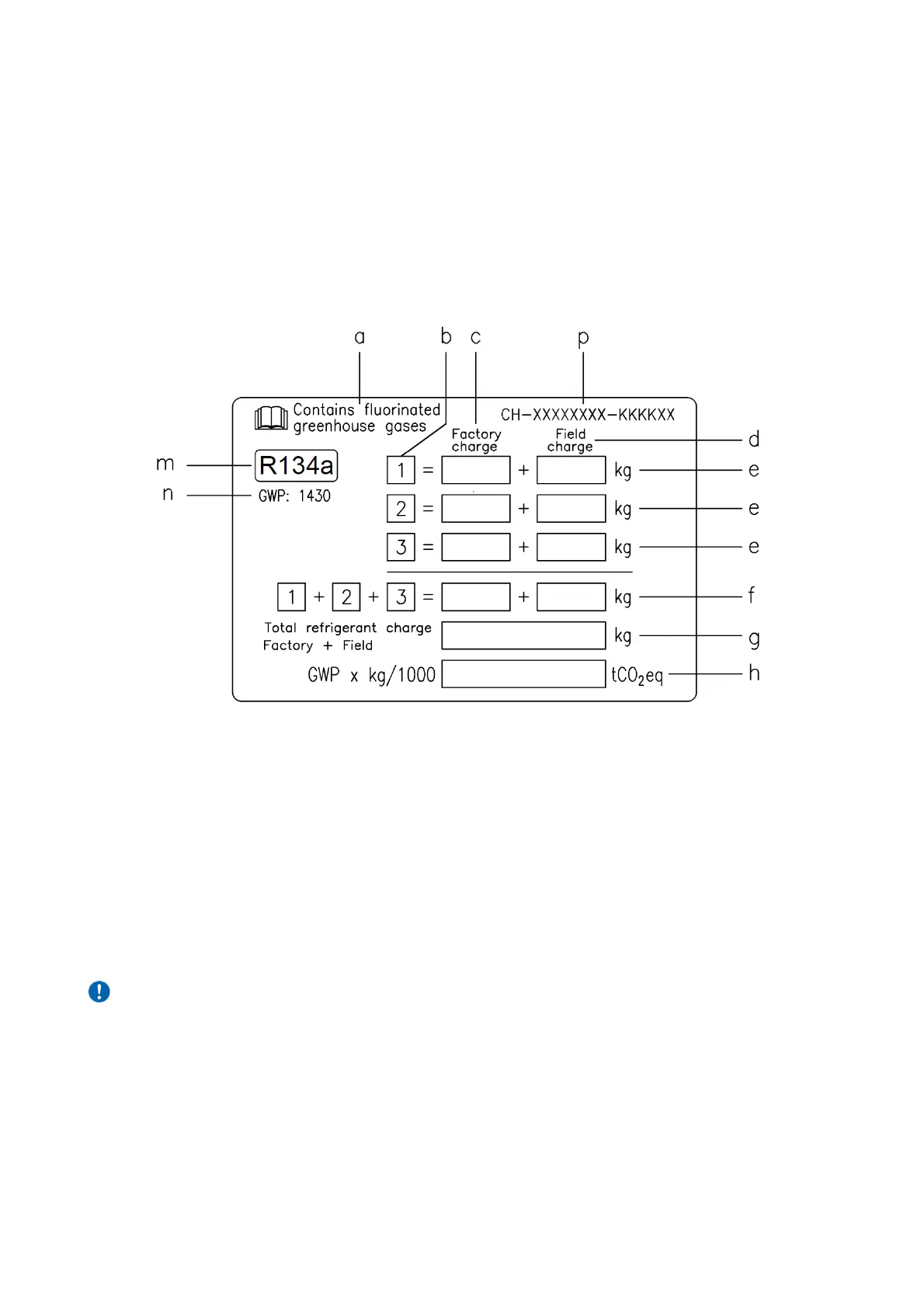 1 Fill in with indelible ink the refrigerant charge label supplied with the product as following instructions: